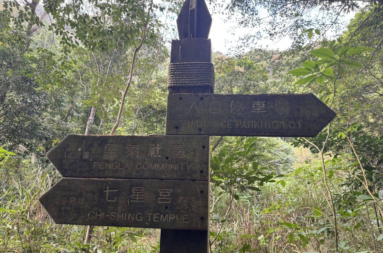 ↓蓬萊溪護魚步道全長1.6公里,有明確的路程及所需時間的指示牌。