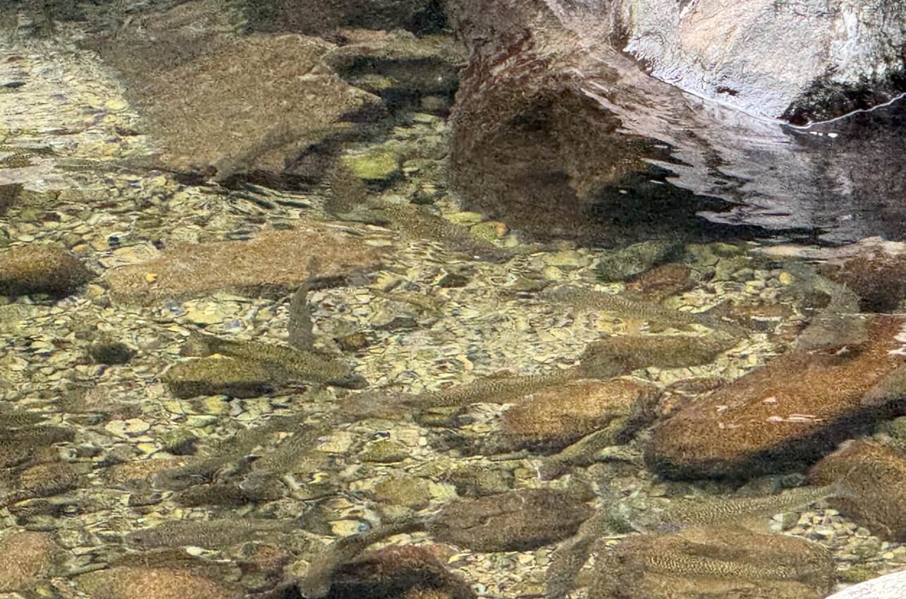 ↓這裡也可以近距離欣賞魚兒悠游水中,數量相當多,蓬萊溪護溪有成。
