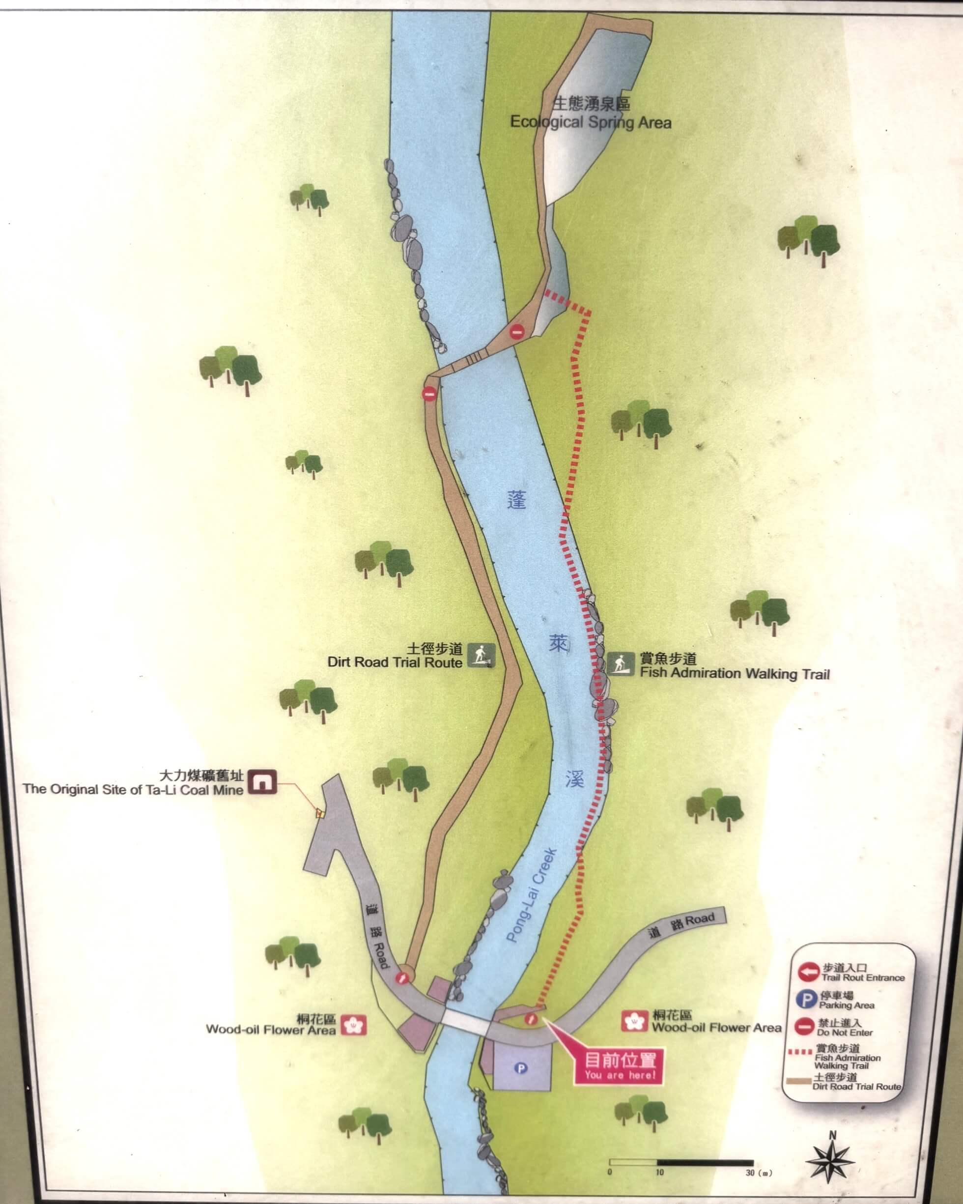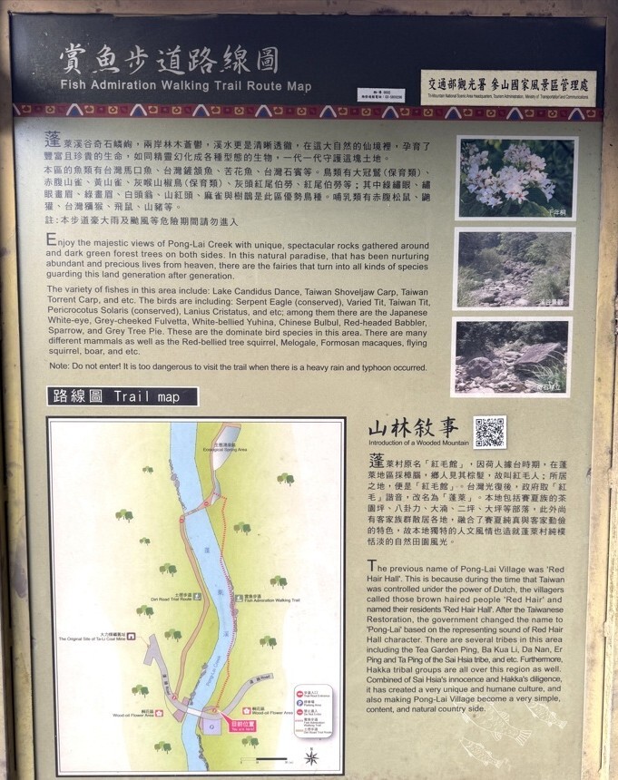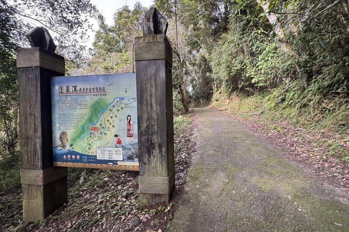 ↓我們下午就先走「蓬萊溪自然生態園區」裡最重要的「蓬萊溪護魚步道」。