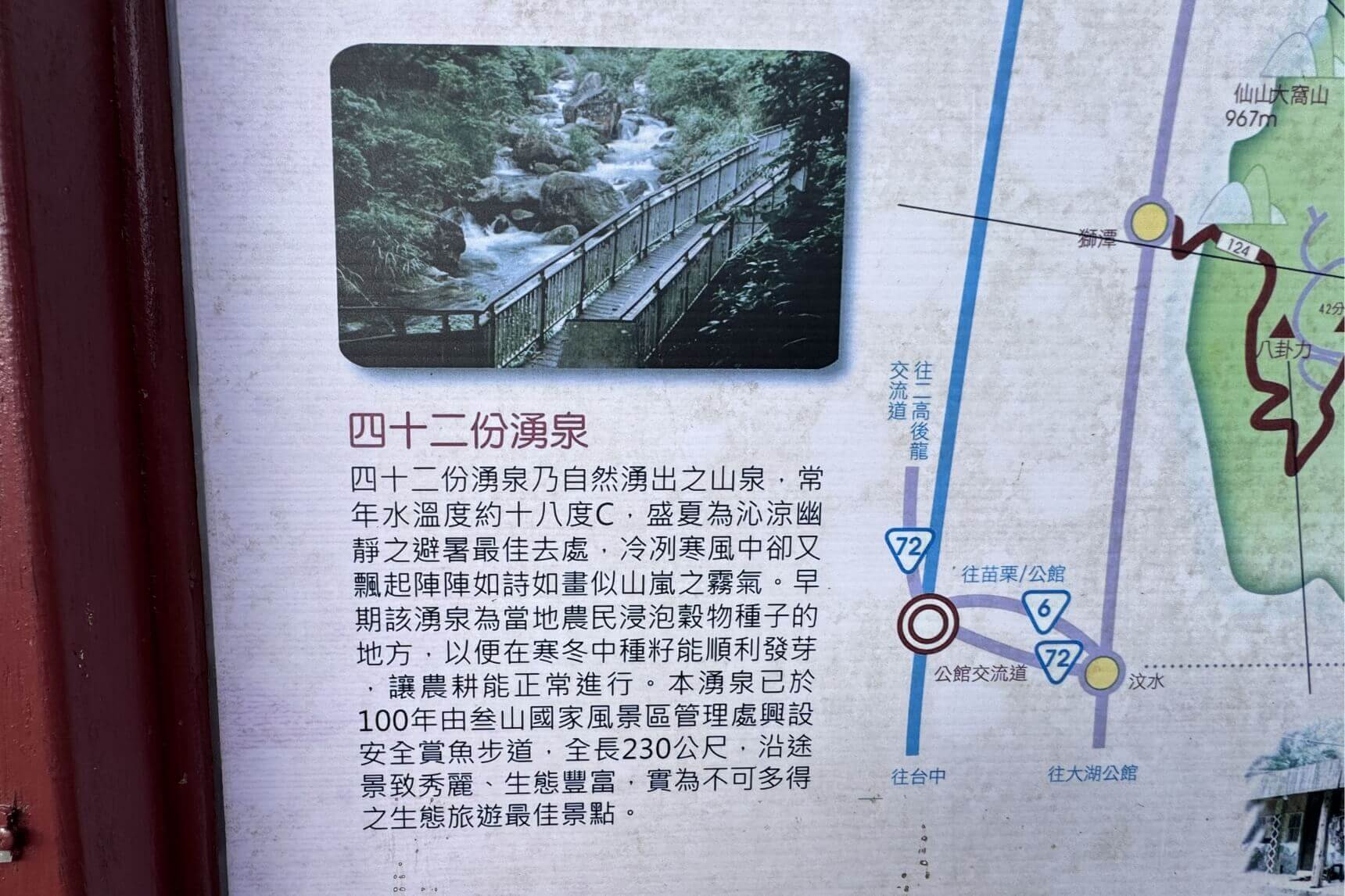↓約15分鐘即回到入口處。隨後,繼續開車沿著【苗124線】走,來到下午的另一個重點行程「四十二份湧泉」。