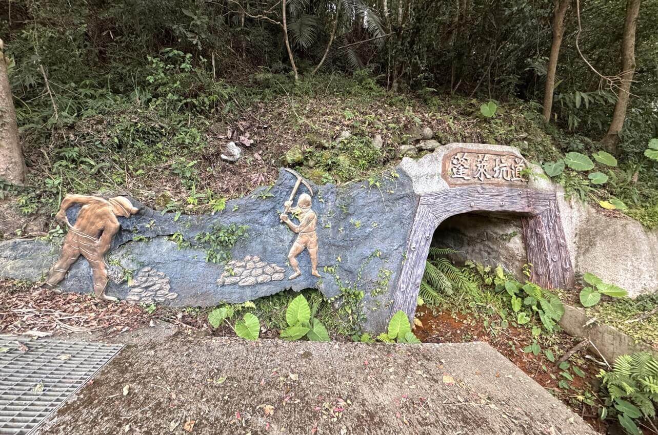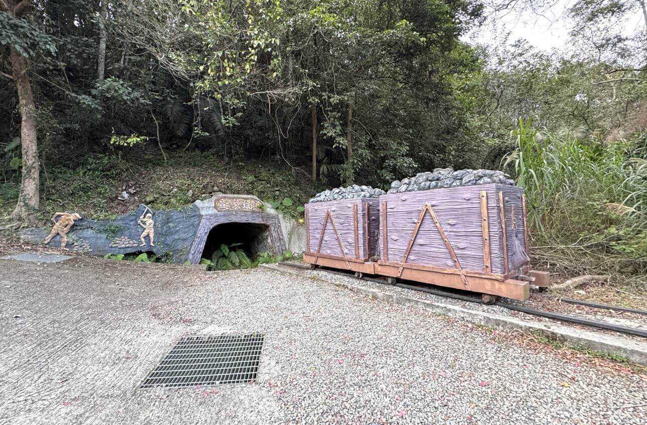 ↓走到步道尾端,來到「蓬萊坑道」,現場還有模擬的礦坑運煤車廂。
