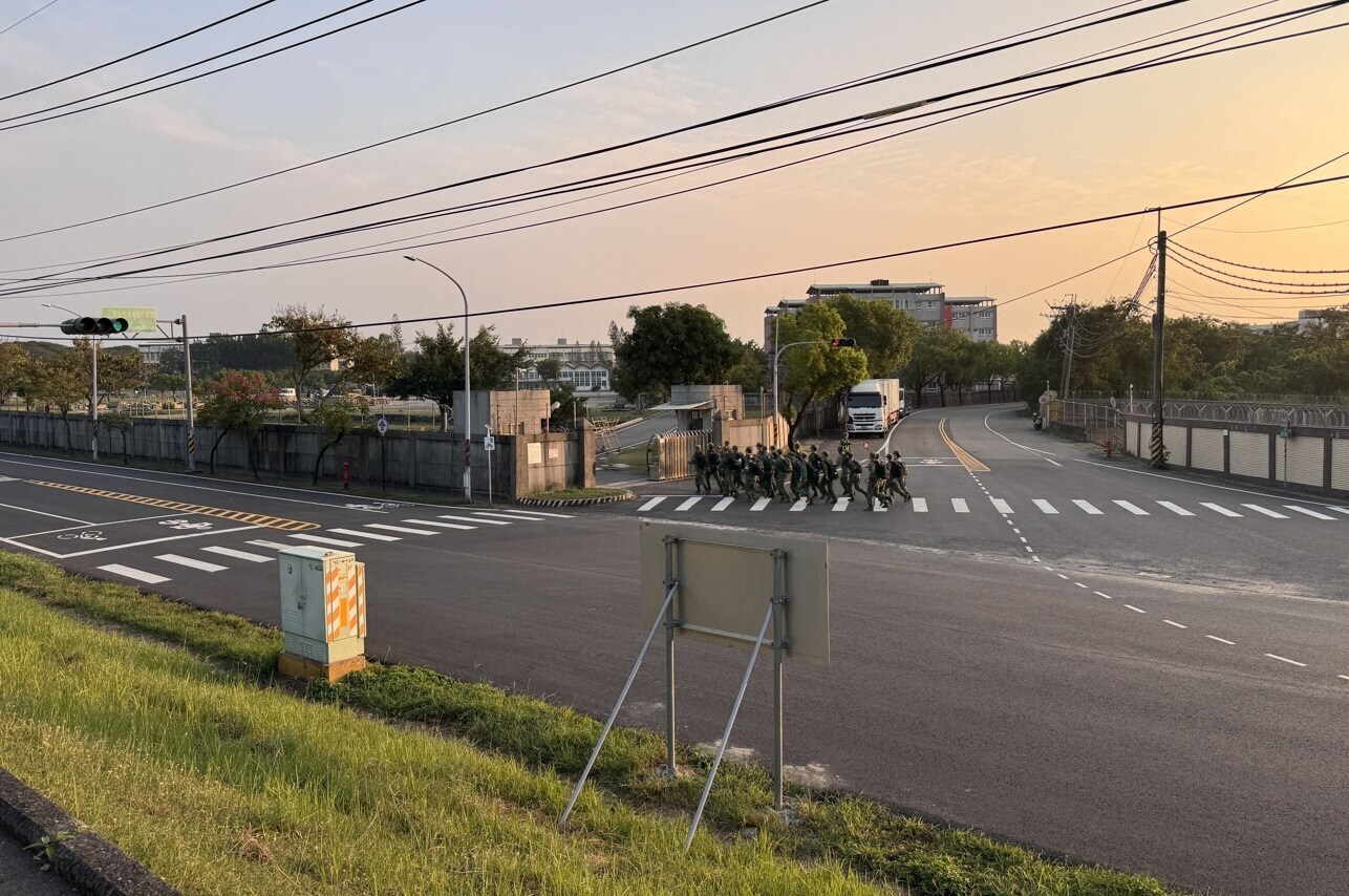 ↓我們也常跑步到阿公店水庫的壩堤上,今天在阿公店水庫的壩堤上,就剛好看到一群阿兵哥從另一個側門進入營區,我們以前也偶爾會從這個門進出。哈哈!都是40年前的往事了,時間過得真快!