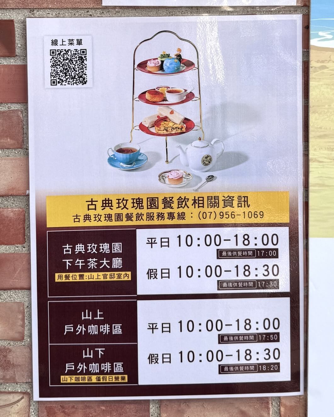 ↓打狗英國領事館目前委由知名餐飲「古典玫瑰園」經營維護,開放時間平日10:00~19:00,假日9:00~19:00,每週三休館,假日有提供免費定時導覽服務。入園全票99元,另有39元及49元的不同身份的優待票。