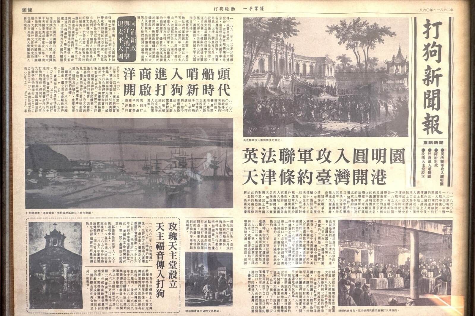 ↓1840年【鴉片戰爭】,中國門戶大開;1857年開始,兩場【英法聯軍】,簽訂了《北京條約》及《天津條約》,台灣開港,外國人進入台灣、洋人進入哨船頭,成為洋人的新聚集地,才有打狗英國領事館的設立,開啟了打狗新時代。