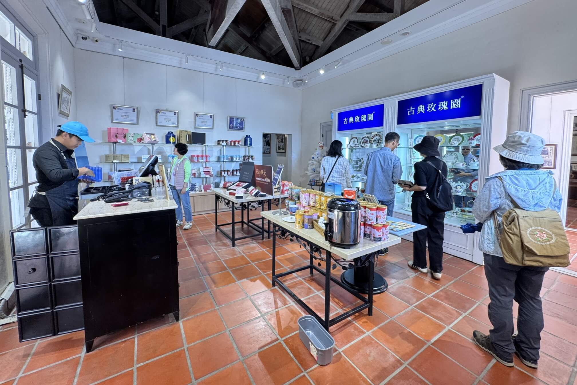 ↓右側這一間是展示間,左側這一間則是古典玫瑰園的餐飲區及賣場,先參觀右側的展示間。