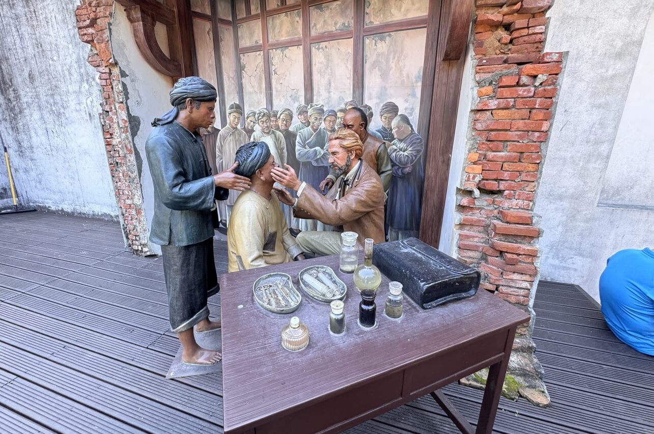 ↓這是馬雅各醫師為民眾看診的情境模擬模型。馬雅各(James L. Maxwell)是一位英國的傳教士,也是第一位(1865年)英國長老教會派駐台灣的海外宣教師,曾於台南及高雄行醫傳教多年。