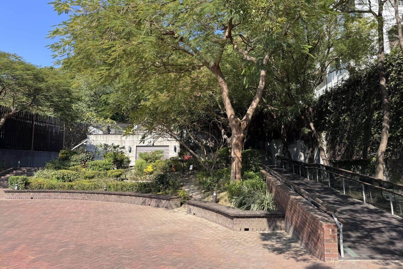 ↓領事館後側的花園及活動平台。