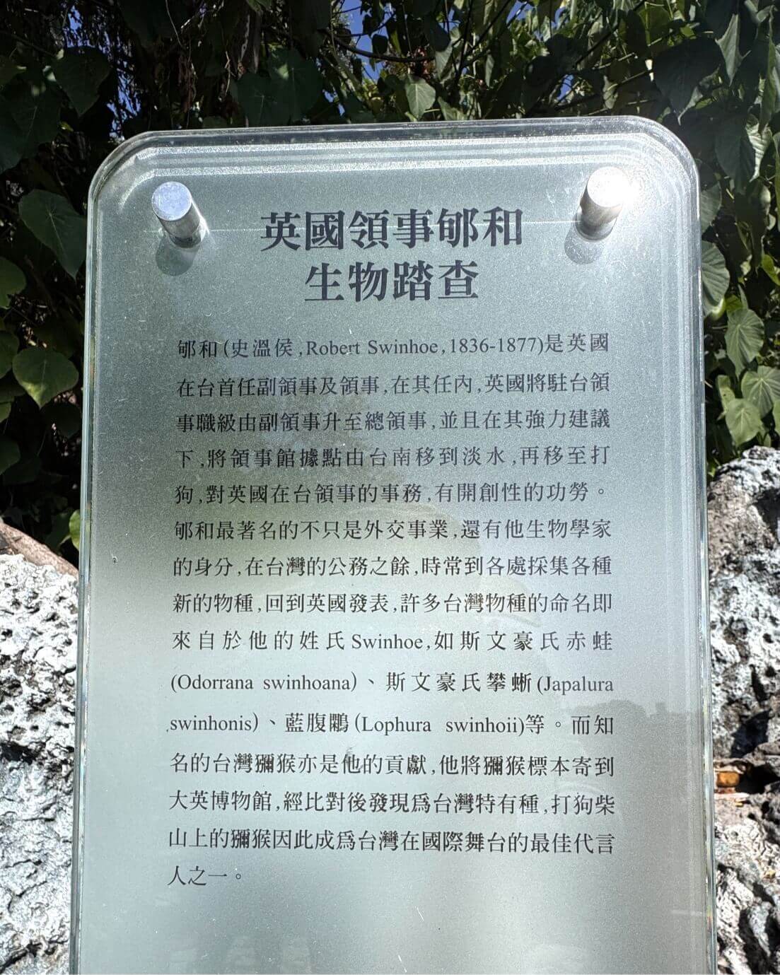 ↓途中,看到這座英國首任副領事及領事郇和(史溫侯,斯文豪,Robert Swinhoe)的雕像,其實斯文豪也是一位著名的生物學家。