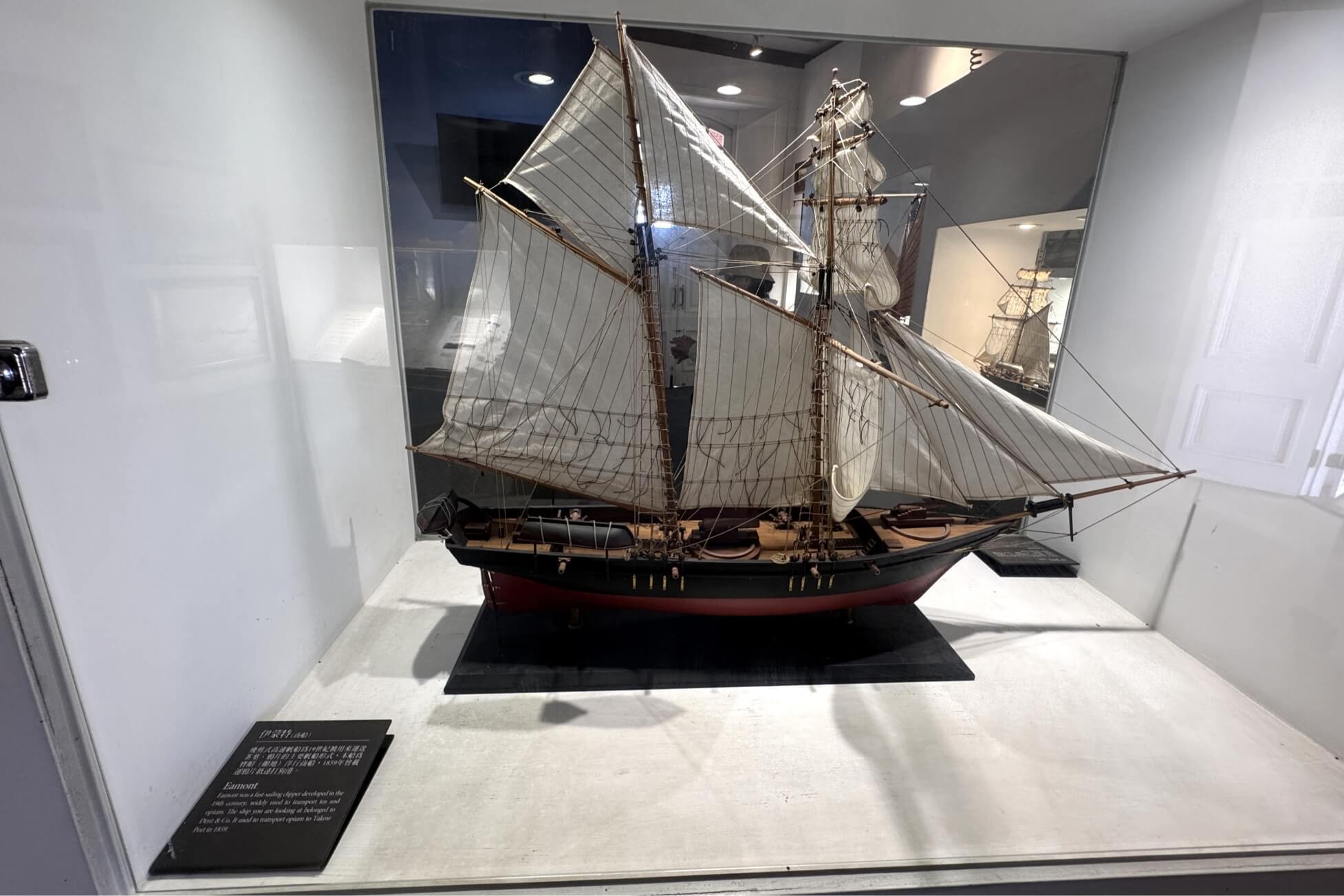 ↓這艘是「伊蒙特(Eamont)商船」,為一『飛剪式高速帆船』,19世紀時被用來運送茶葉、鴉片的主要帆船形式,本船曾於1859年載運鴉片抵達打狗港。