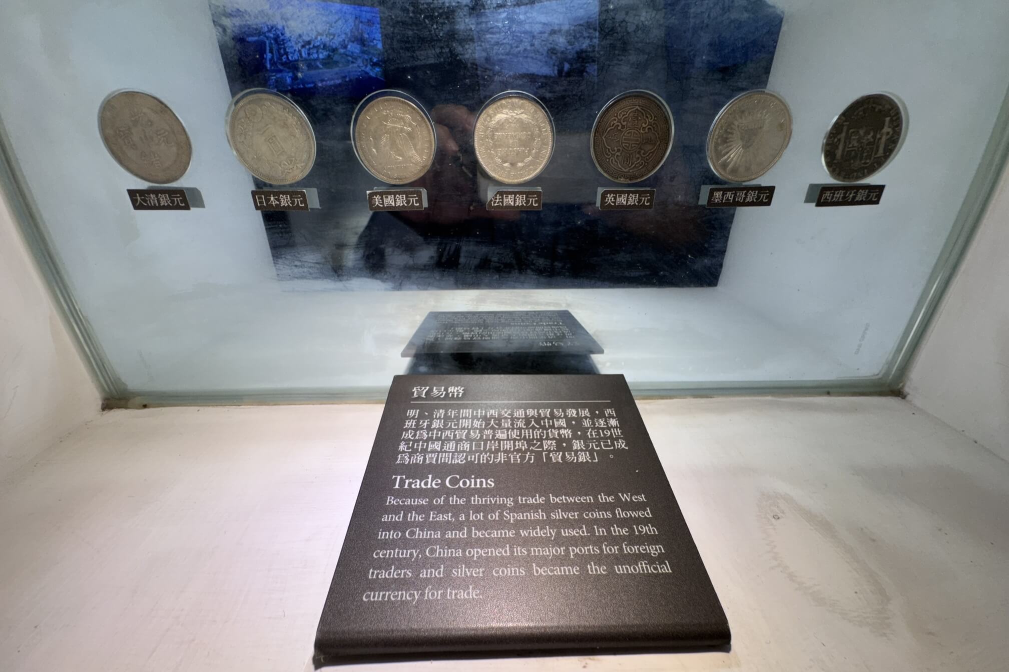 ↓各國的貿易幣。明、清年間,中西交通與貿易發展,西班牙銀元大量流入中國,成為中西貿易普遍使用的貨幣,是商賈間認可的非官方貿易幣。