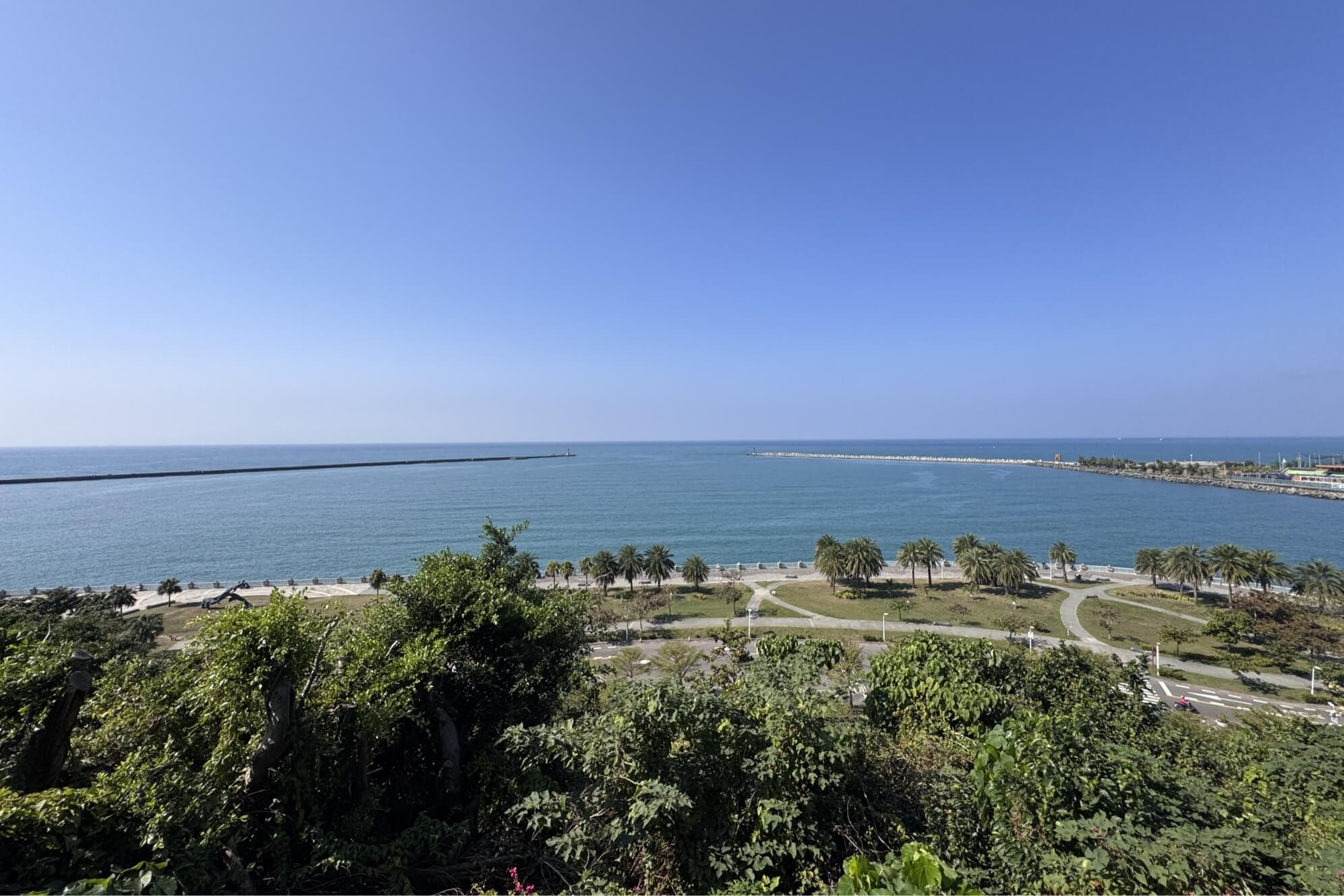 ↓長廊盡頭,可以俯瞰高雄港灣的美麗風光。