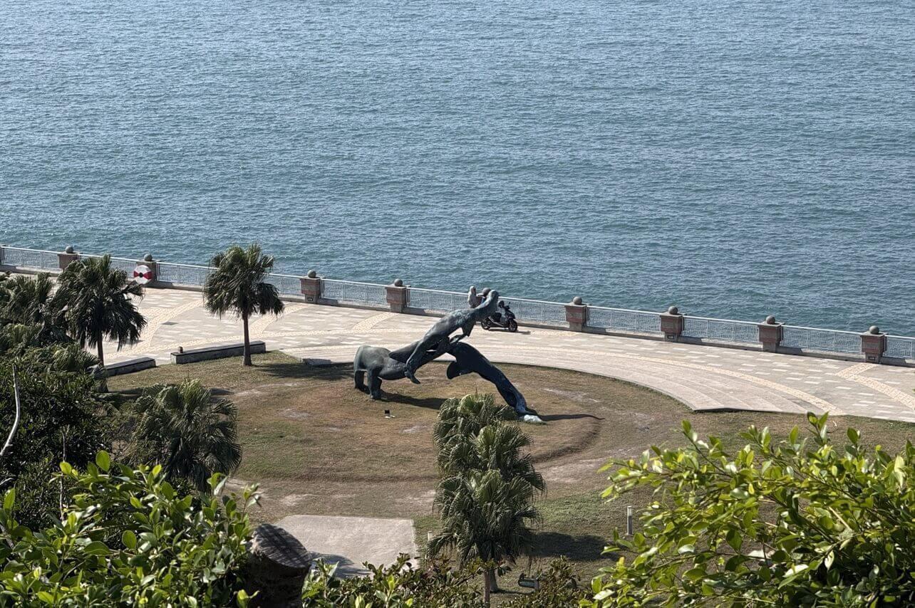 ↓西子灣堤岸旁的雕塑。