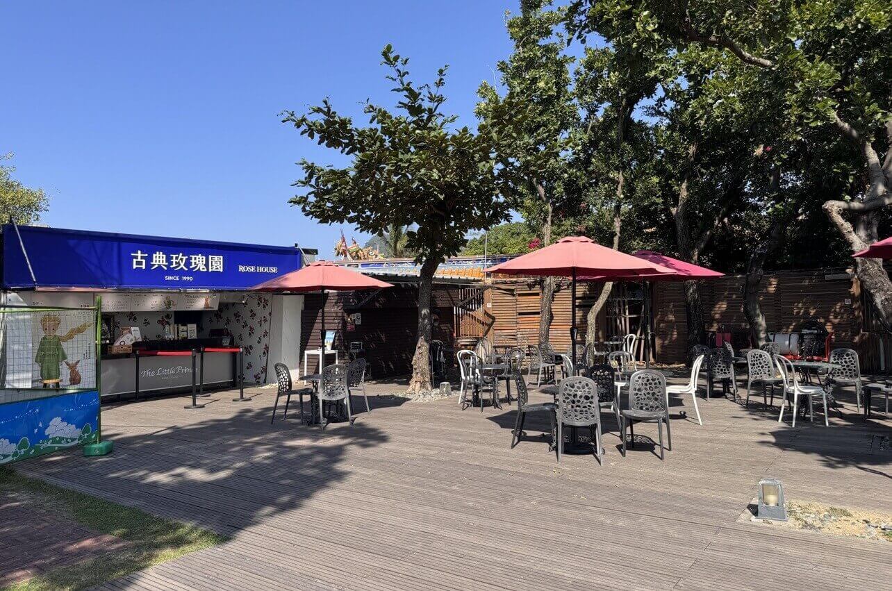 ↓古典玫瑰園的戶外咖啡廳,不過視野沒有觀景平台好。