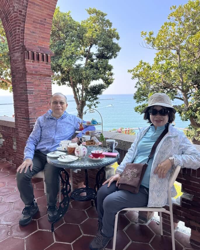 ↓享用完英式下午茶,與小王子道別合照,靜靜地享受園區渾然天成的山海美景。