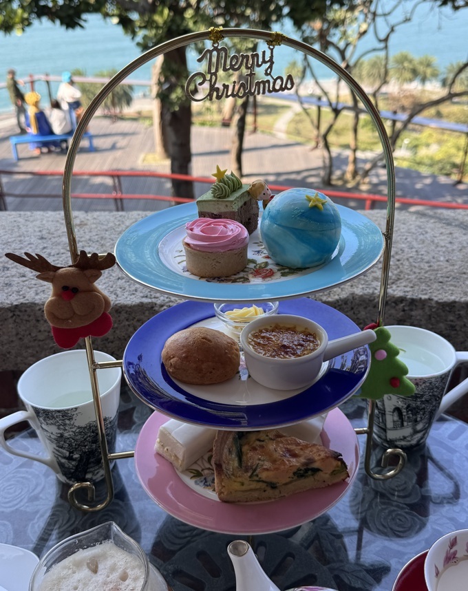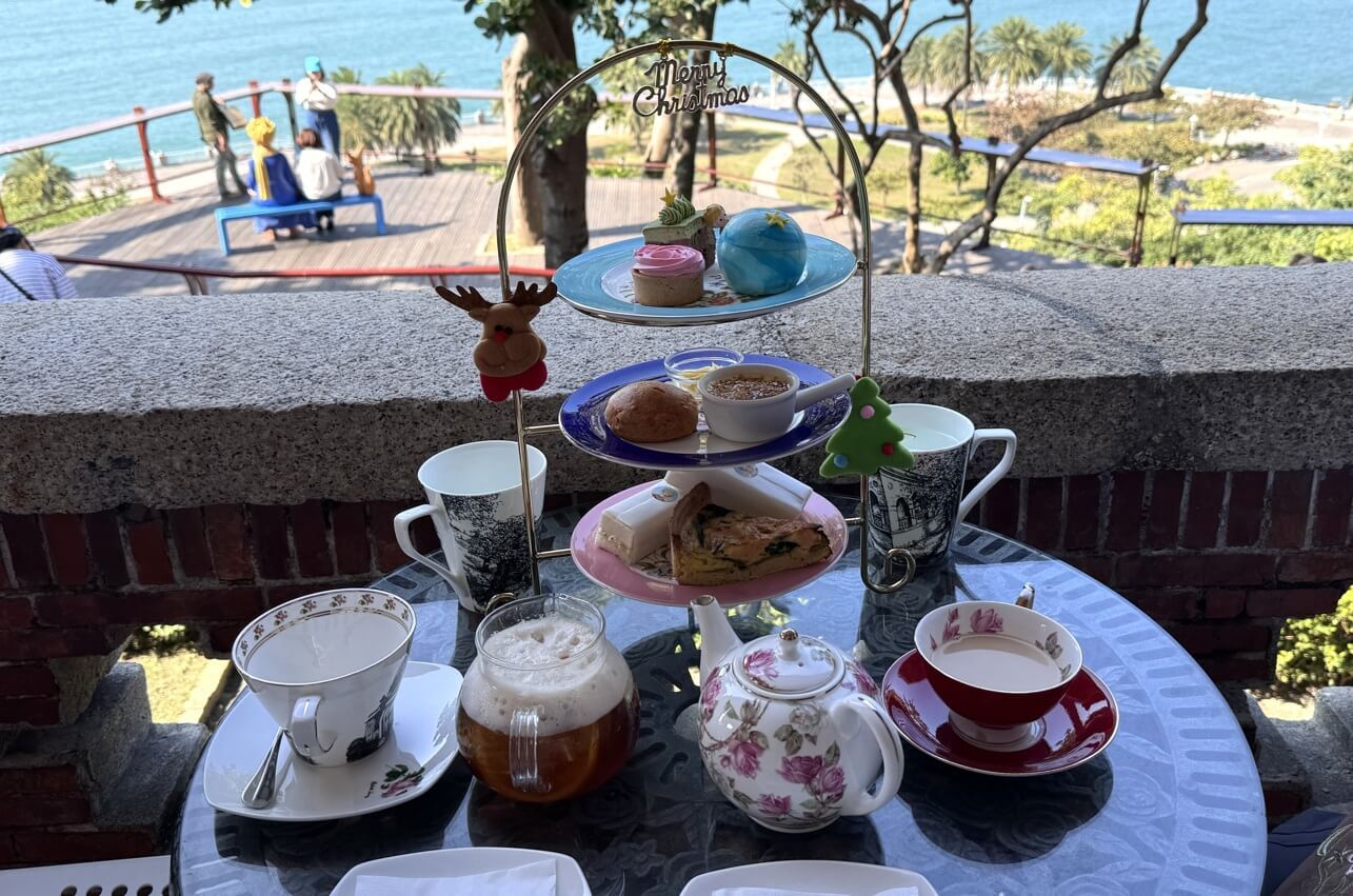 ↓別忘了來一張喝下午茶、倚牆望海的照片。