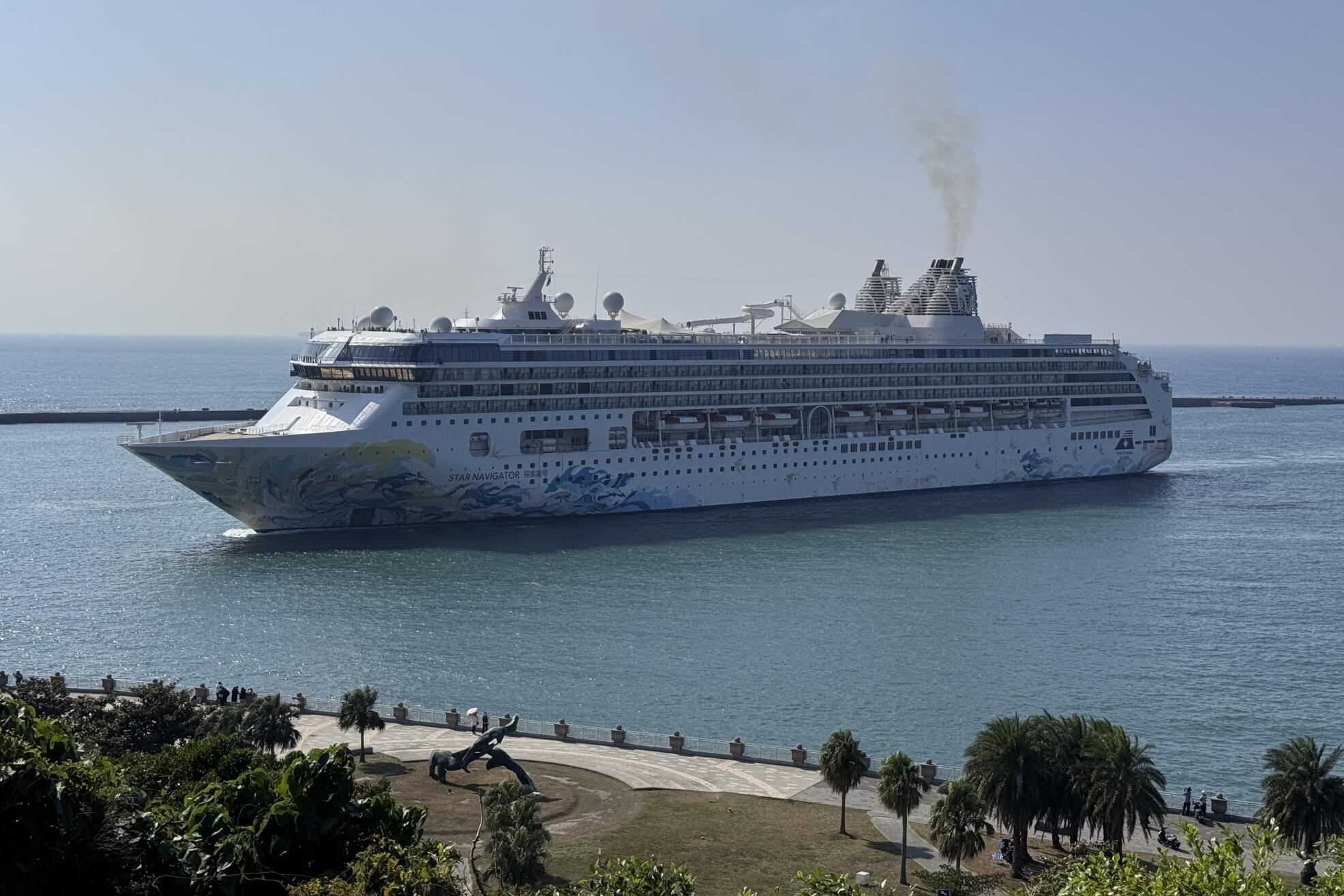 ↓正好有艘大郵輪進港,遊客們紛紛聚集搶拍。