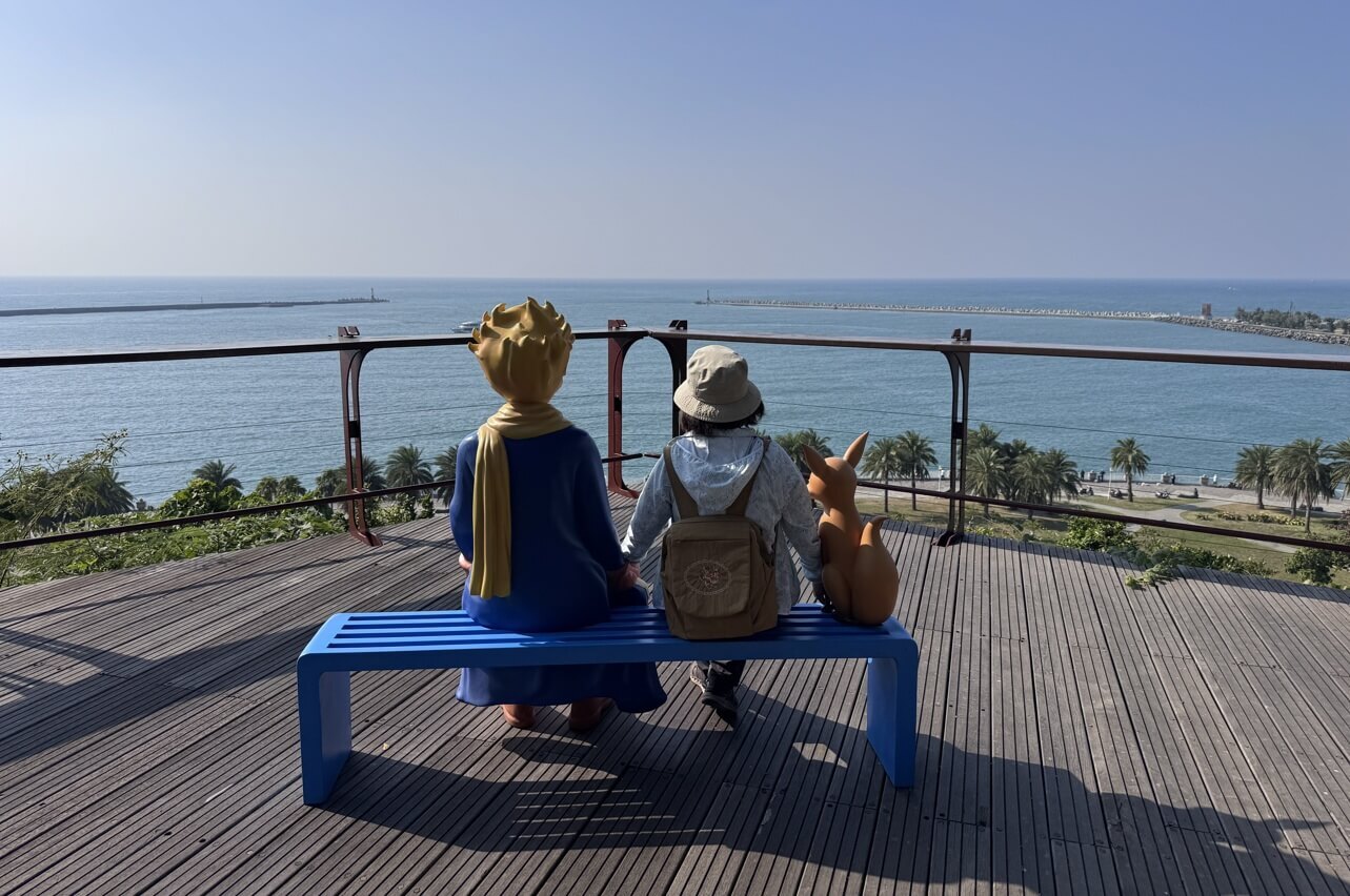 ↓因應【看海,是一種陪伴|小王子125週年特展】,官邸後側觀景台上,有另一座小王子的雕像。