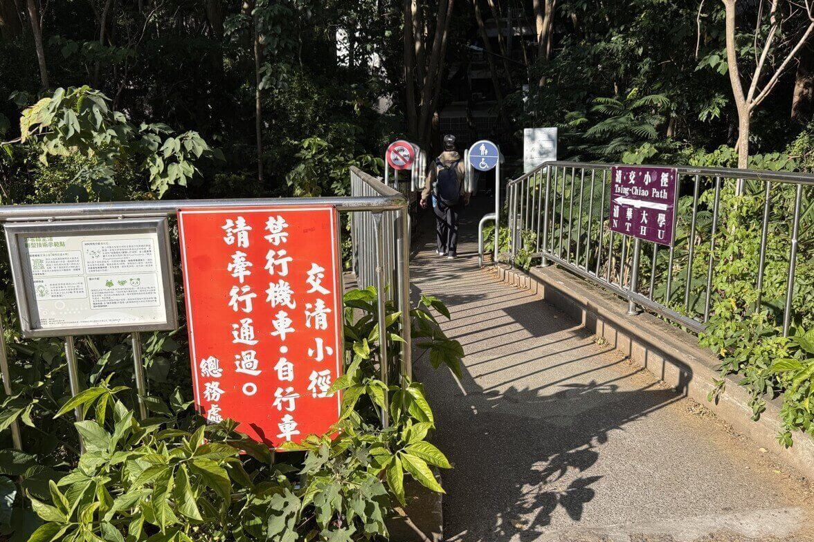 ↓接著要從交大游泳館旁的小徑「交清小徑」,走到清華大學(以下簡稱清大)。這是一條連通交大與清大的小徑,幾十年來承載著不少兩校間的傳奇故事。