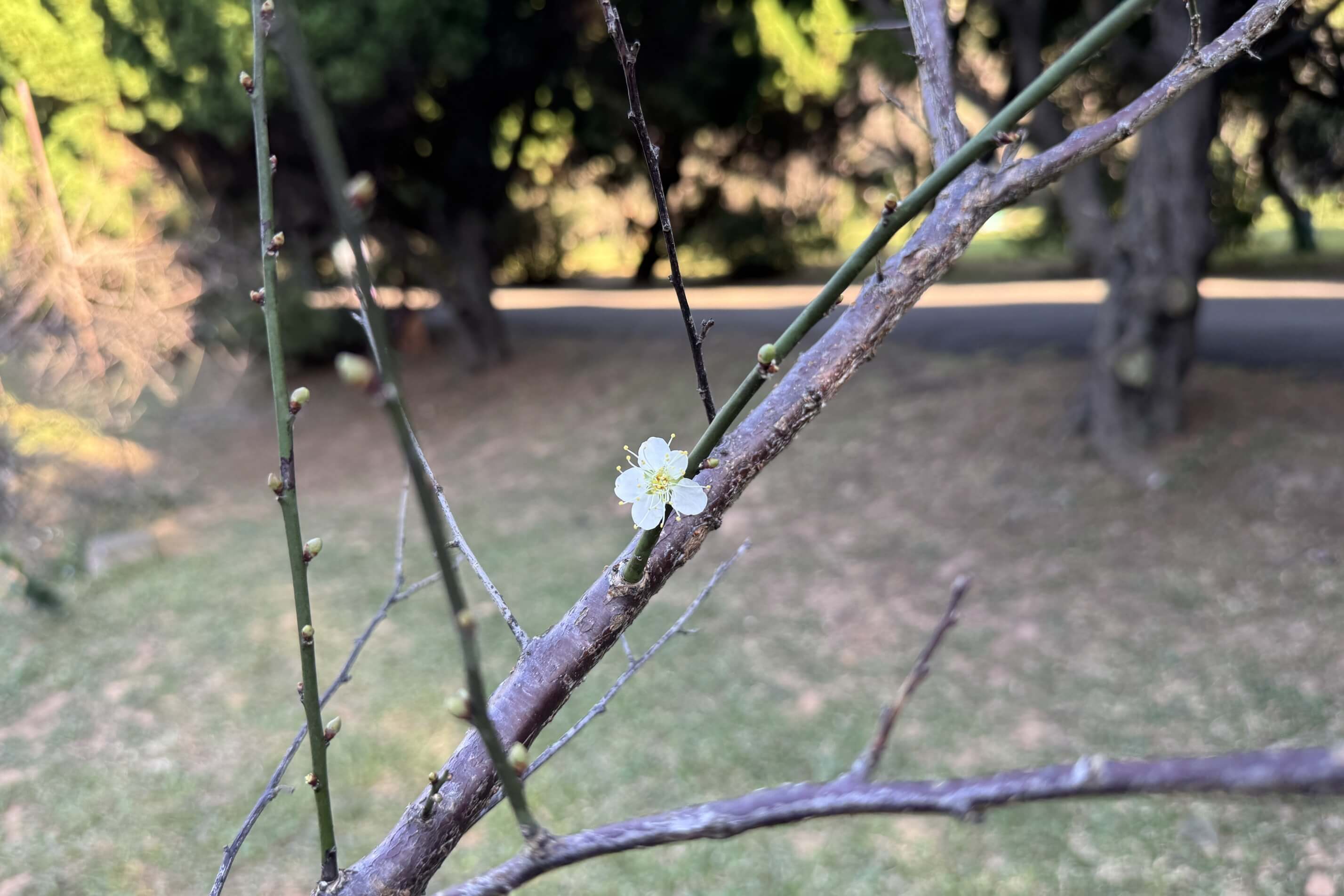 ↓零星的梅花,讓我們『落羽松+梅花』美景串連的美好計畫缺了一角。梅花大部份都還在含苞中,估計約需兩到三週才會盛開。