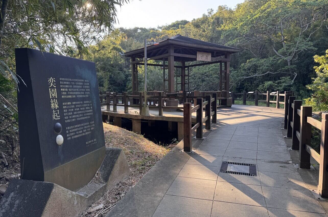 ↓既然賞不成梅花,已經到了清大,清大校園又是國內著名的秀麗,便順遊清大的其他景點。這裡是「奕園」,入口處的石碑,是由金庸大師所題字。