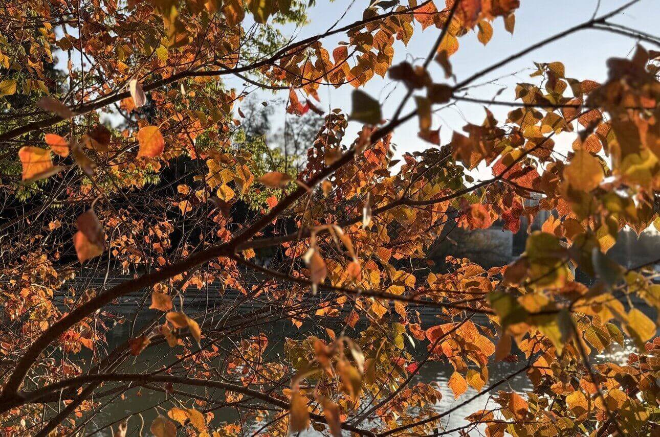 ↓落羽松種植在小池塘邊,倒映在平靜的湖面上,就像一幅幅有味道的風景照。