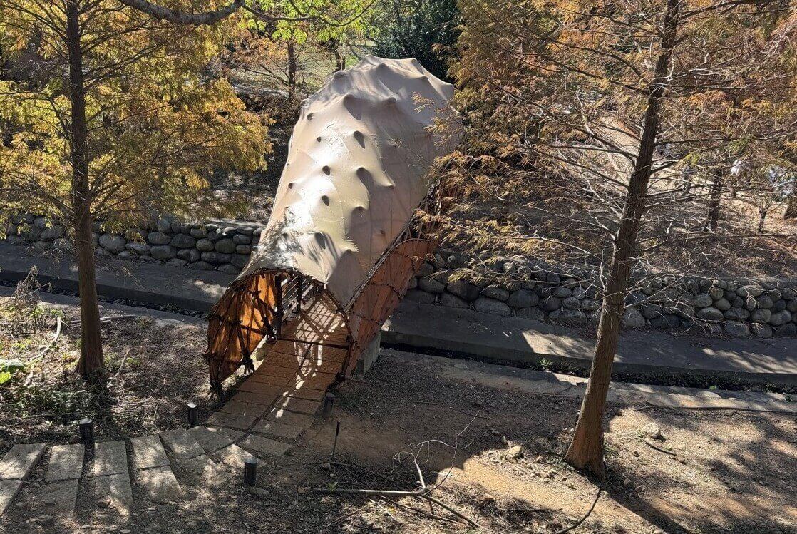 ↓看到一座名為「橋繭」的裝置藝術。