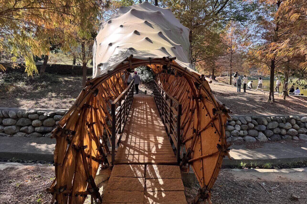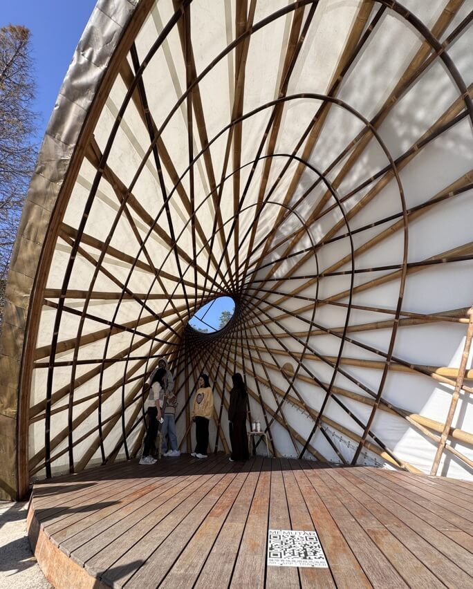 ↓竹構的幾何形狀,是由印尼峇里島運送來台的預製零件所組合而成,是熱門的拍照景點。