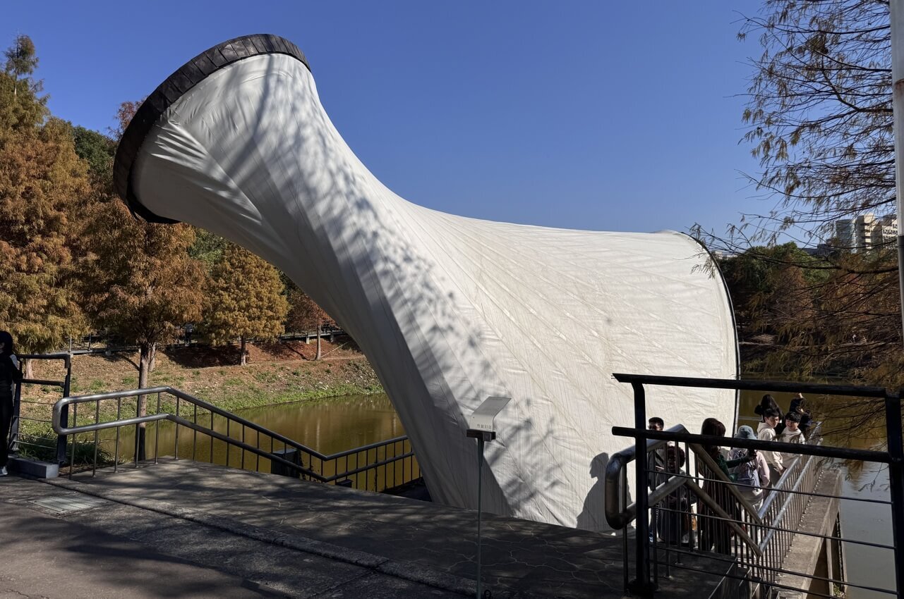 ↓這座白色的裝置藝術,看似一顆超大的杏鮑菇。