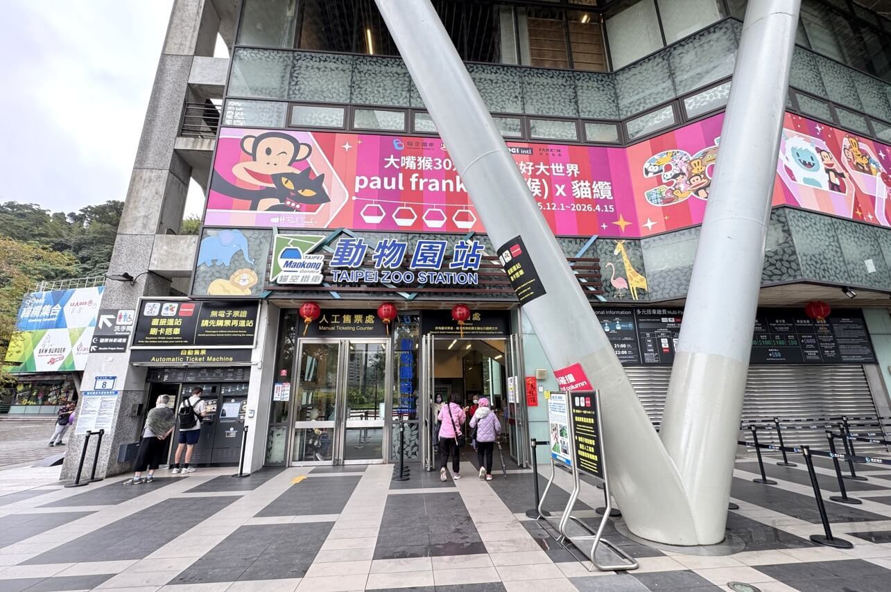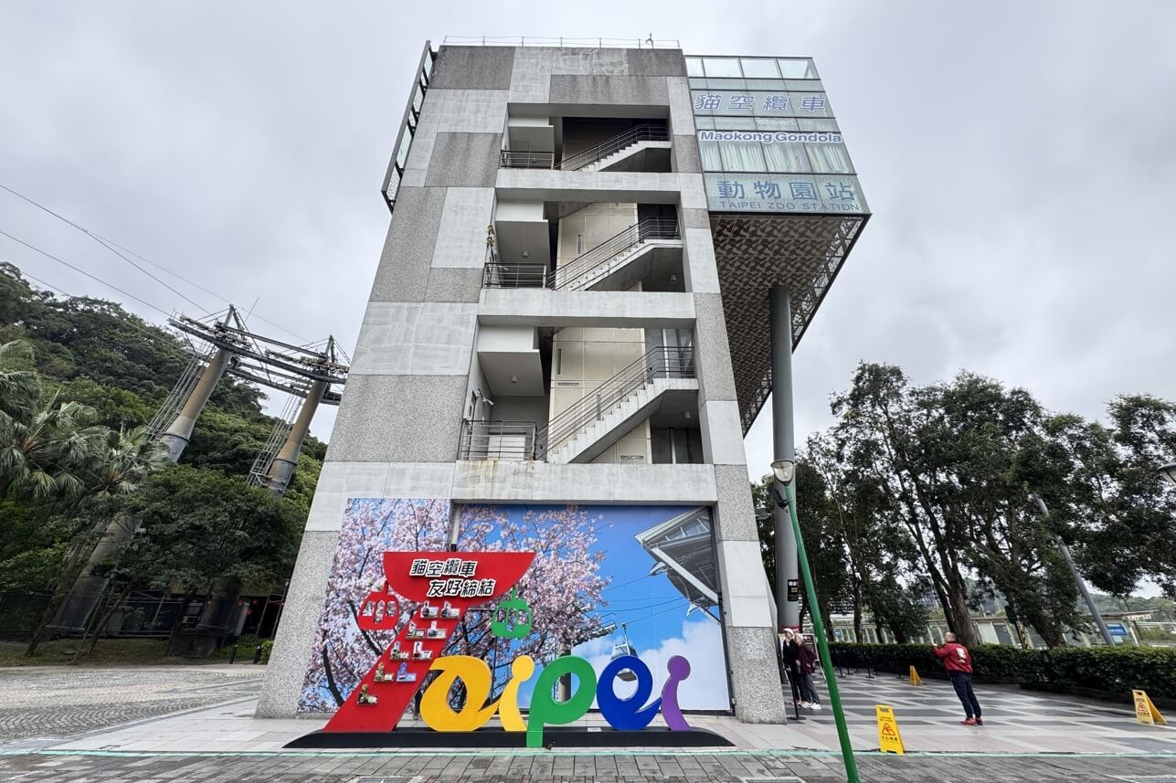 ↓「貓空纜車」的平面車站是「動物園站」,就在捷運「動物園站」旁邊,相當方便。不過,我們今天是開車過來的,在兩個動物園站中間有室內停車場,平日一小時才10元,相當便宜,車位也多。