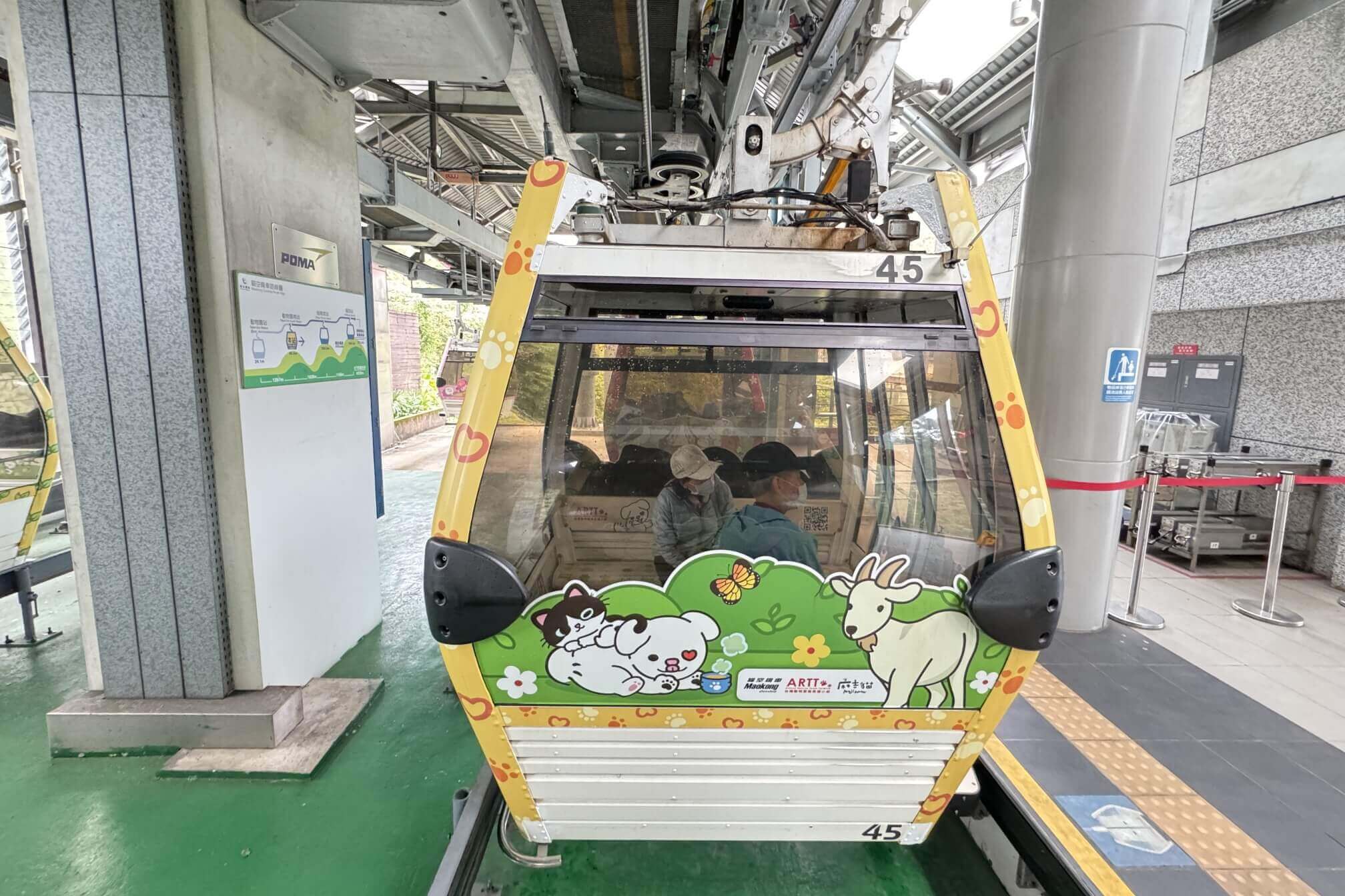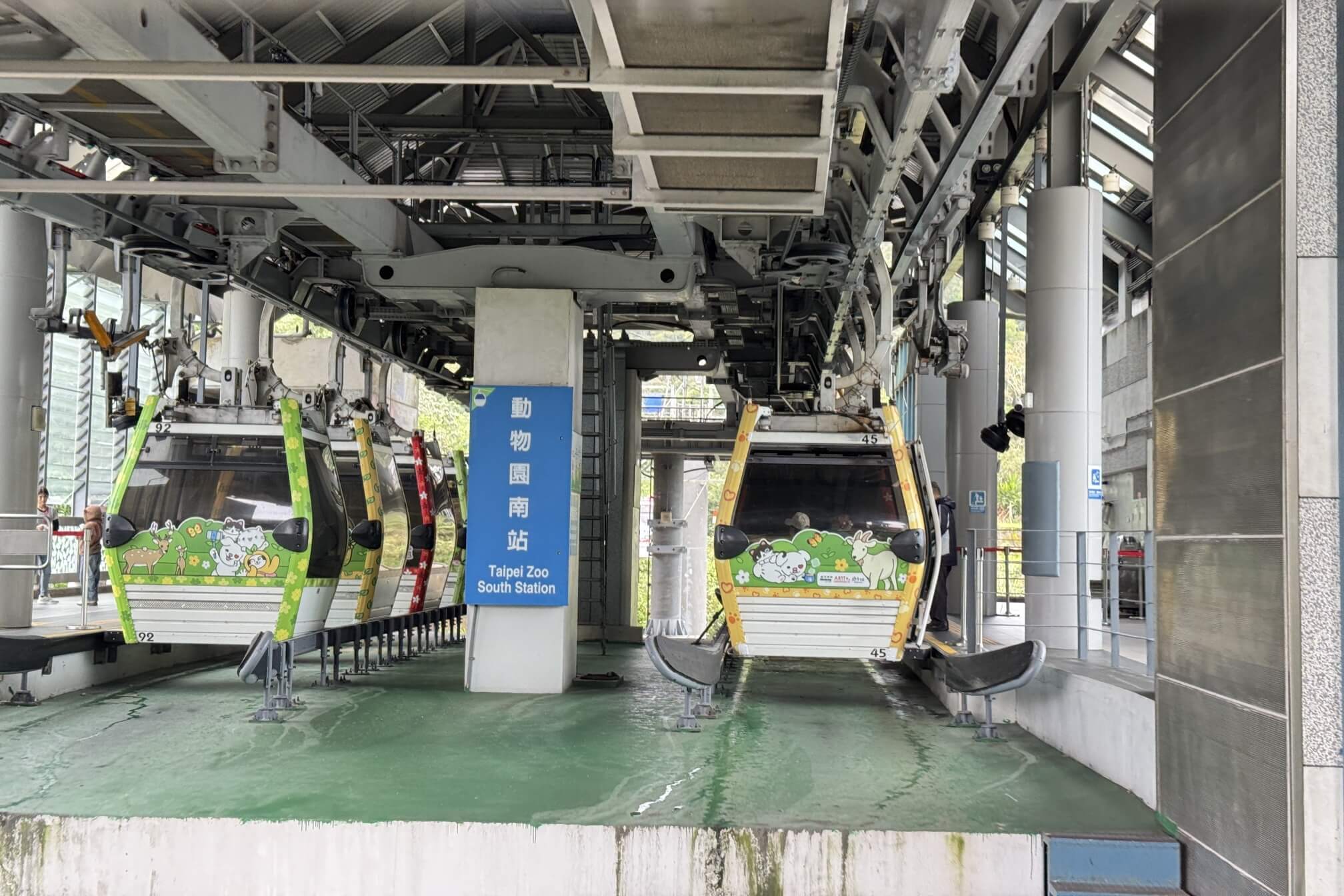 ↓纜車緩緩經過動物園南站,供遊客可以上下車。原來,纜車的外觀也很可愛,滿滿的動物園意象。