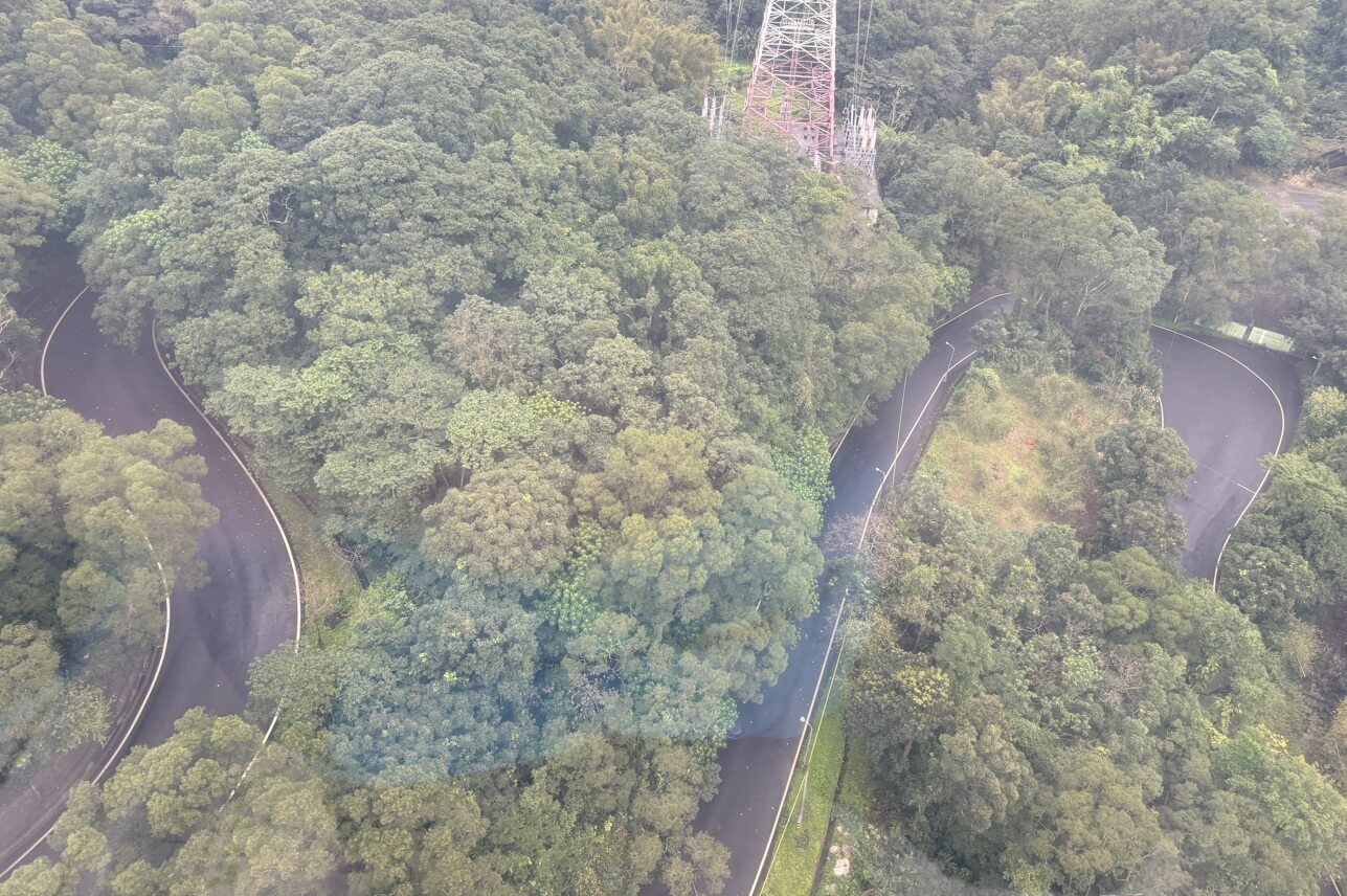 ↓上指南宮及貓空的山路,宛如一條大蛇,蜿蜒於山谷間。