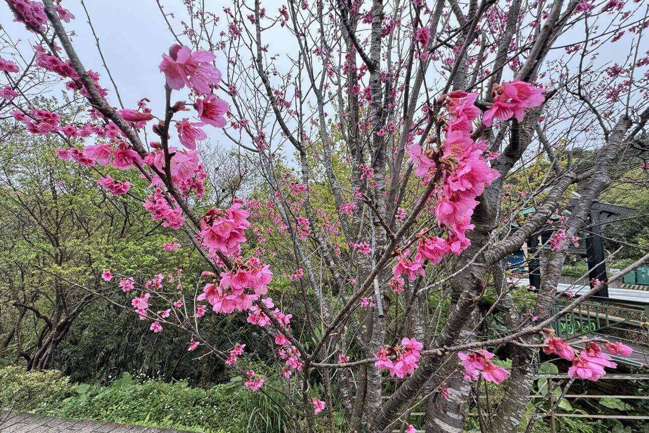 ↓接近「指南宮站」時,看到了不少櫻花林盛開中。