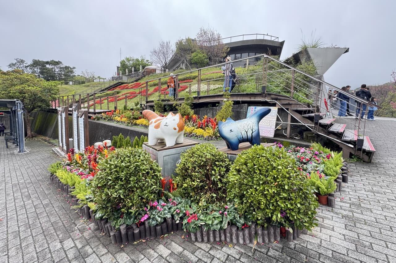 ↓花園前也有花貓雕塑。