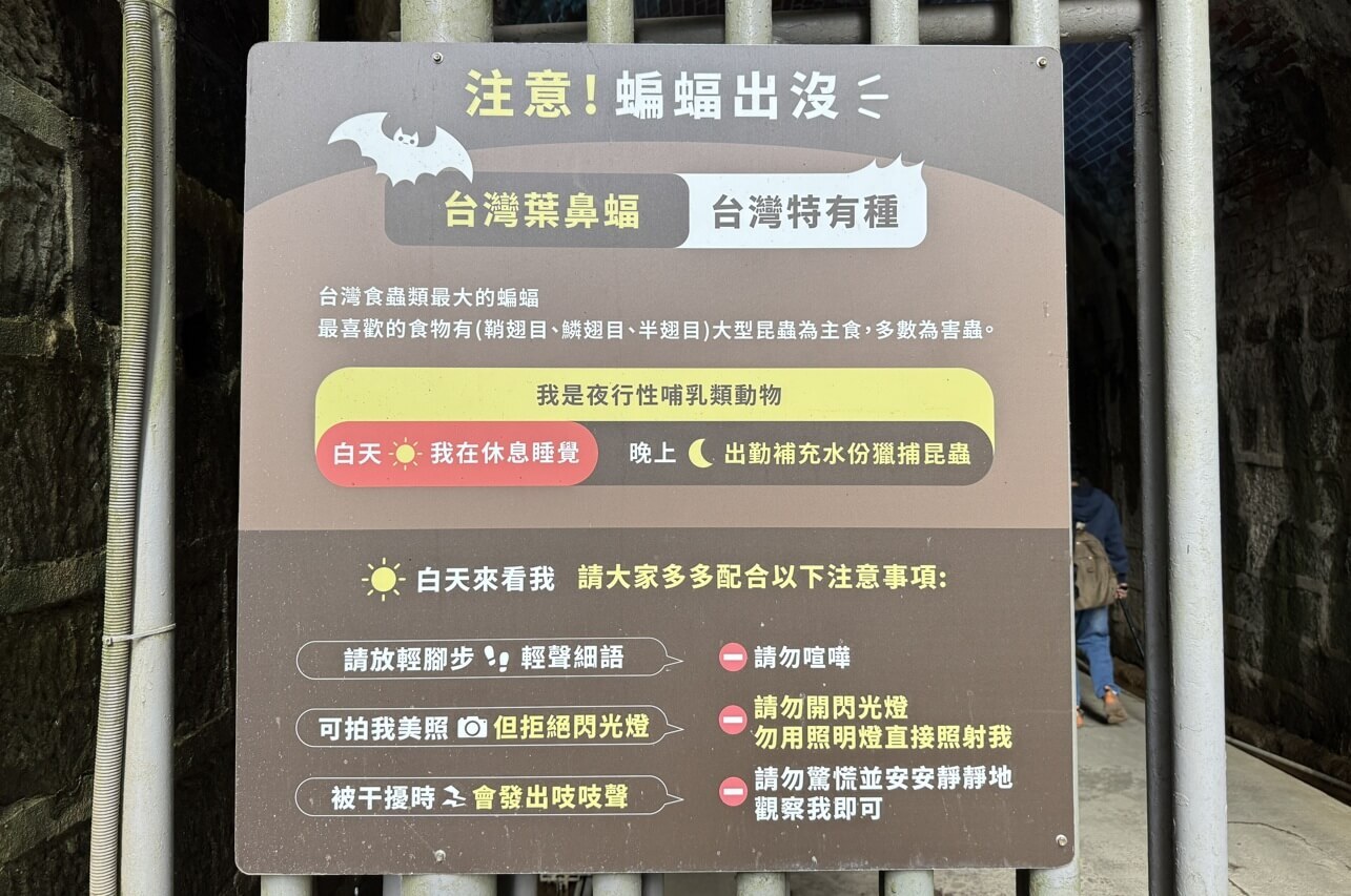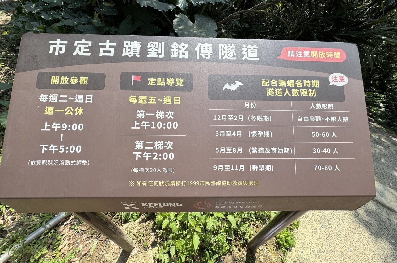 ↓「劉銘傳隧道」週一公休,週末有定時導覽,隧道內因為有蝙蝠群聚,因此有季節性的人數管制。