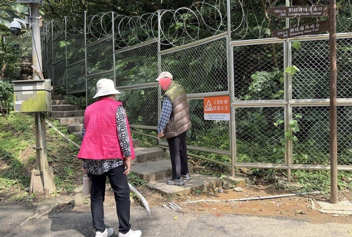 ↓約五分鐘即抵達步道起點,有一些民眾與我們走相反方向,要爬上去會有一些辛苦。步道旁邊是軍事管制區,不知是什麼單位?