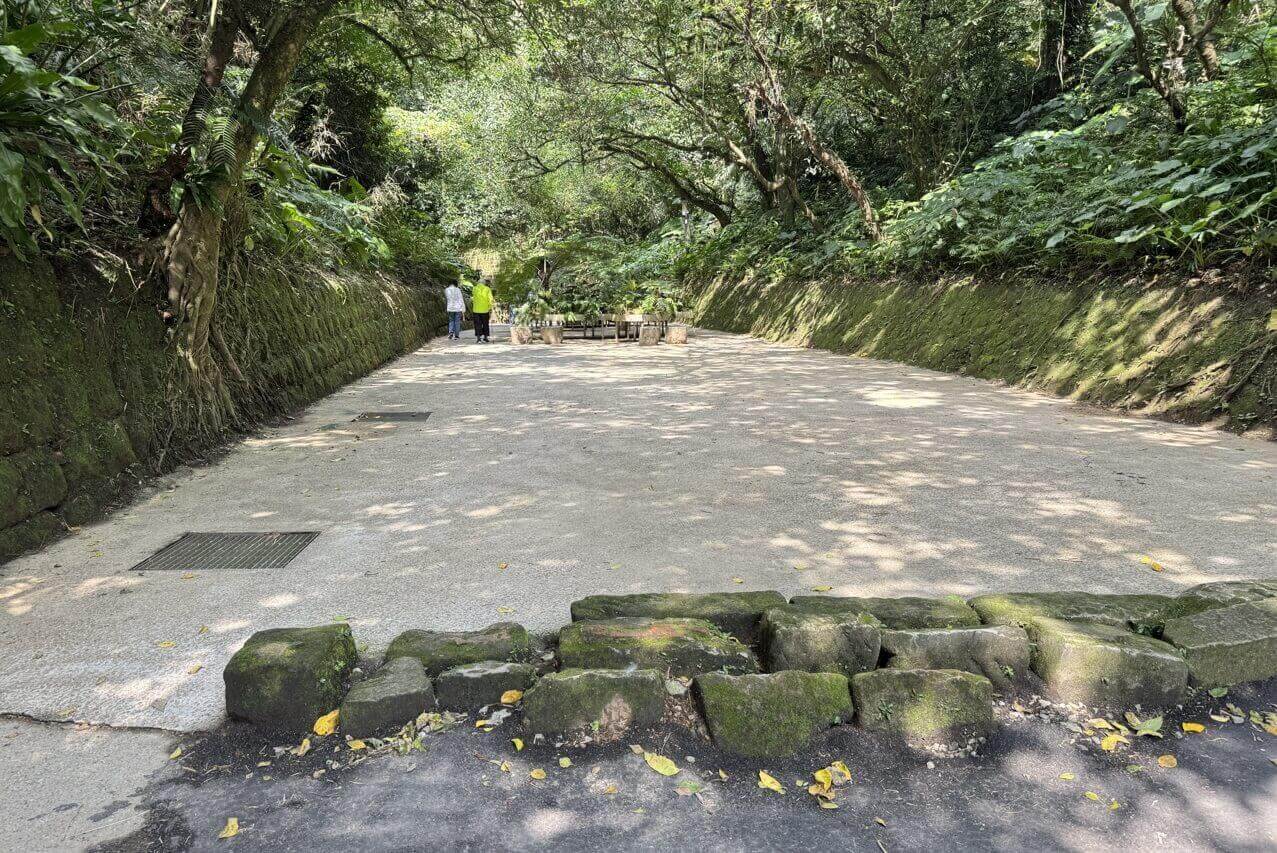 ↓這是一條水泥階梯步道,都在樹蔭下,路況優良,尤其我們先苦後甘,爬完獅球嶺步道及砲台群,來到這裡都是下坡路段,顯得輕鬆許多。