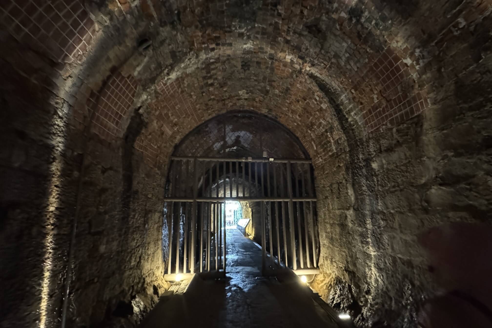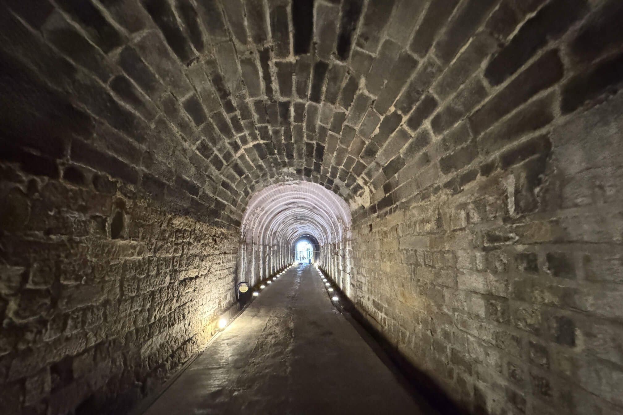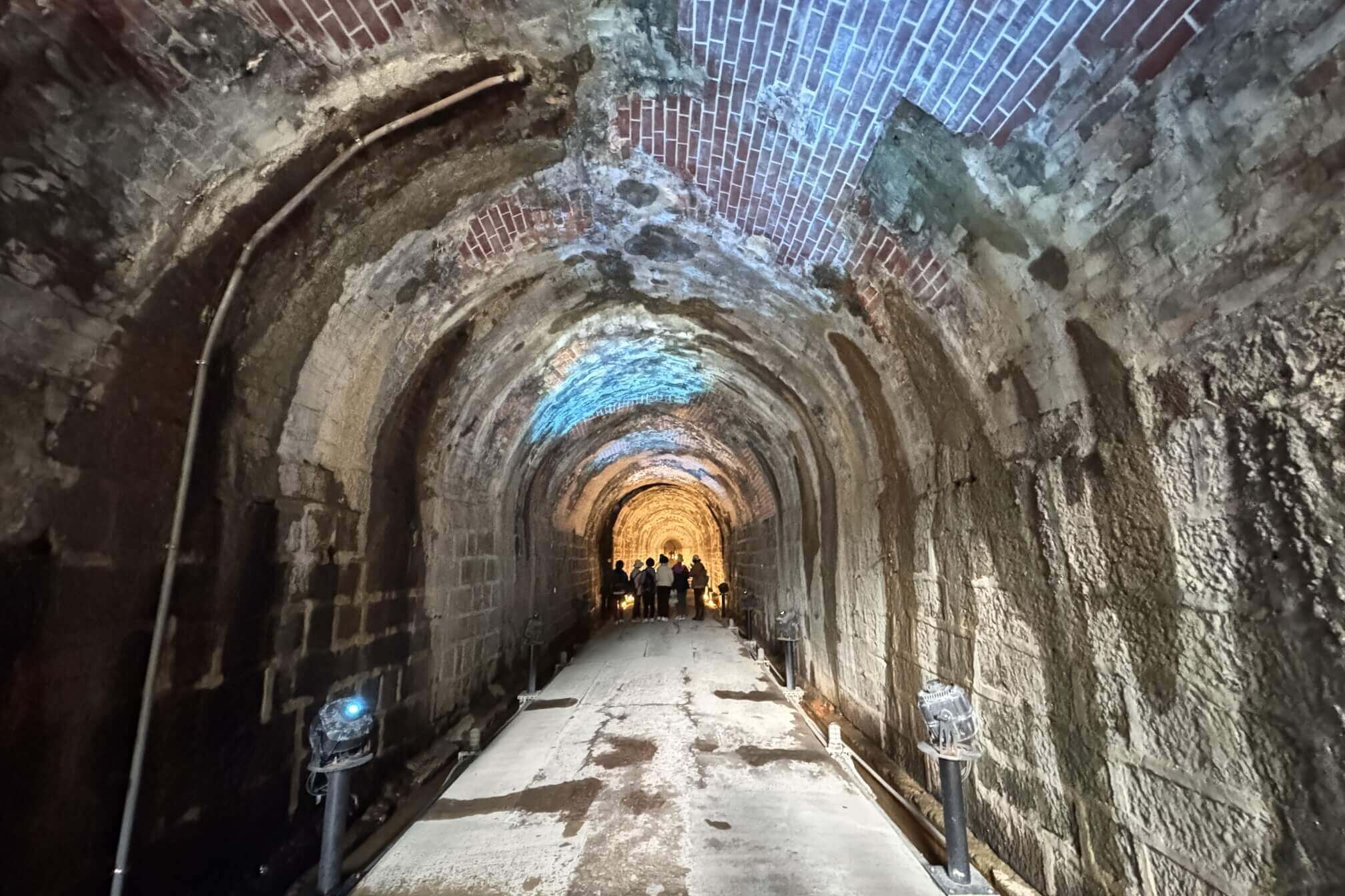 ↓整個隧道看得出來分成好幾段的施作,結構上有些許的差異,應該是根據各段土質的不同,而有不同的結構,分別有石拱、磚拱及天然岩拱。
