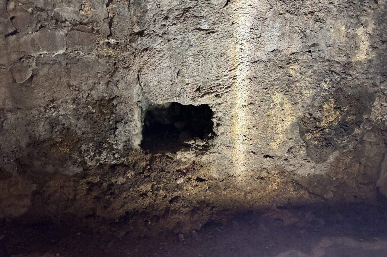 ↓隧道側壁上,留有不少的方孔,據推測是當年施工時所設置的支撐點。