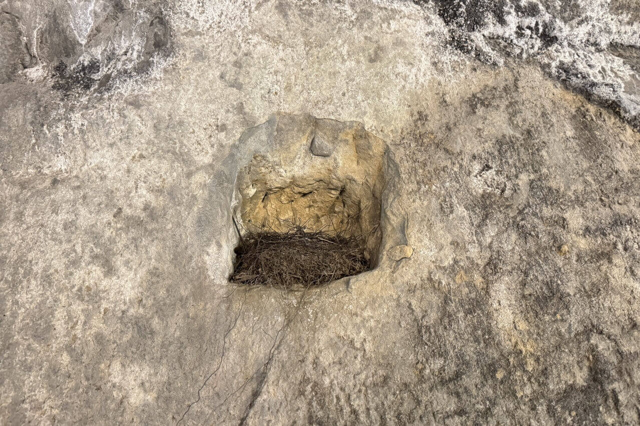 ↓有方孔被鳥兒利用,築巢成家了。
