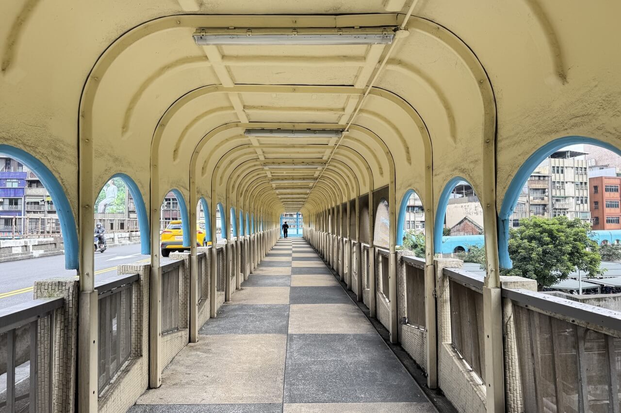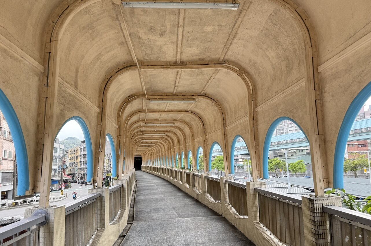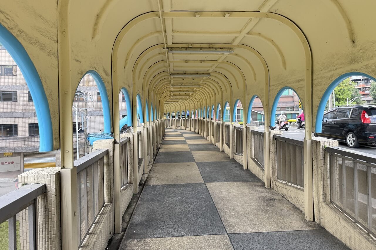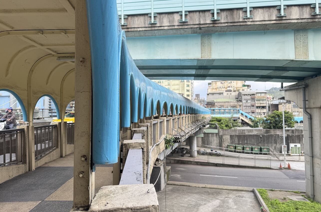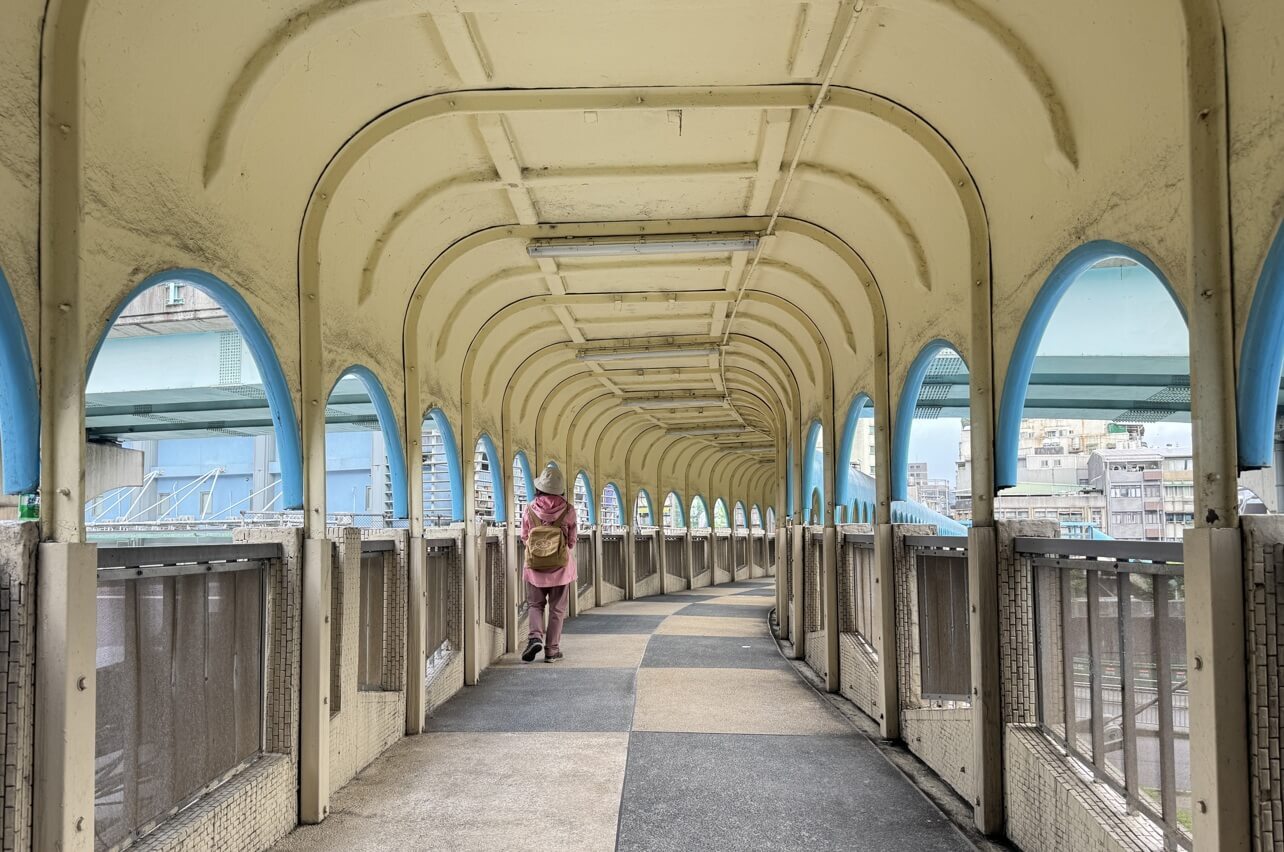 ↓中山陸橋一環一環的曲形迴廊及淺藍色線條,加上微微彎曲的橋座,有獨特的浪漫魅力及懷舊氛圍。