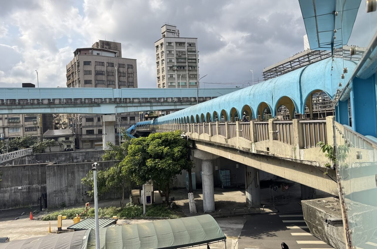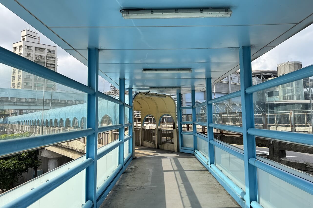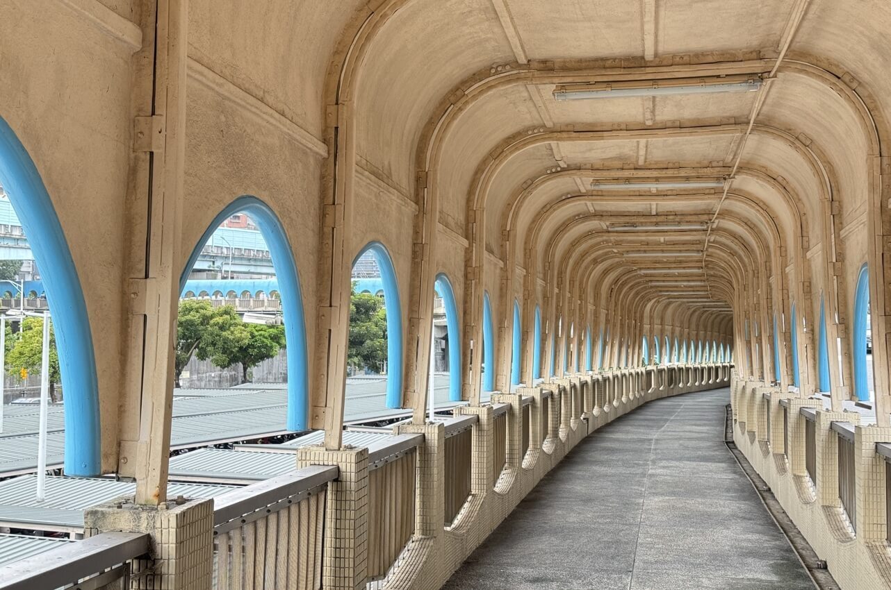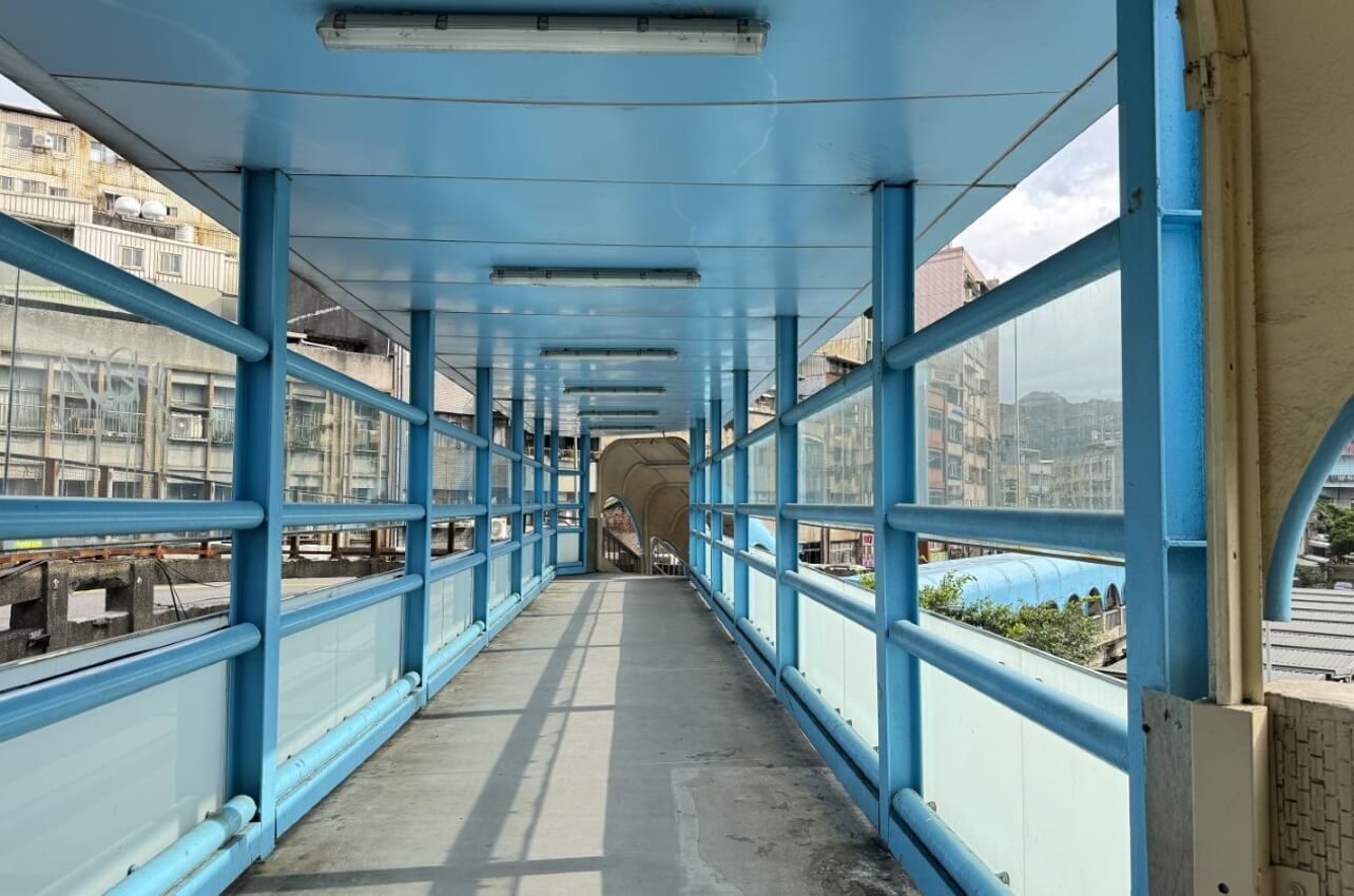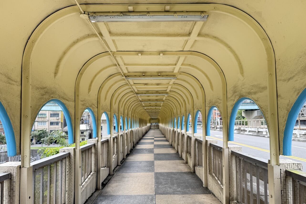 ↓中山陸橋一環一環的曲形迴廊及淺藍色線條,加上微微彎曲的橋座,有獨特的浪漫魅力及懷舊氛圍。