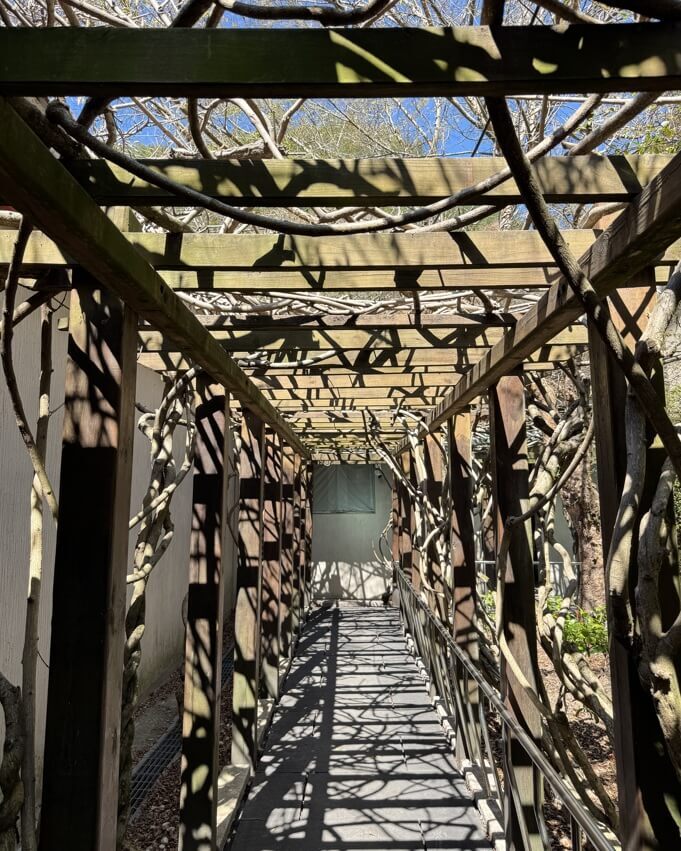 ↓這是武陵山莊著名的紫藤花架,不過花季還沒到,大概要四月中、下旬才是它的盛開期。