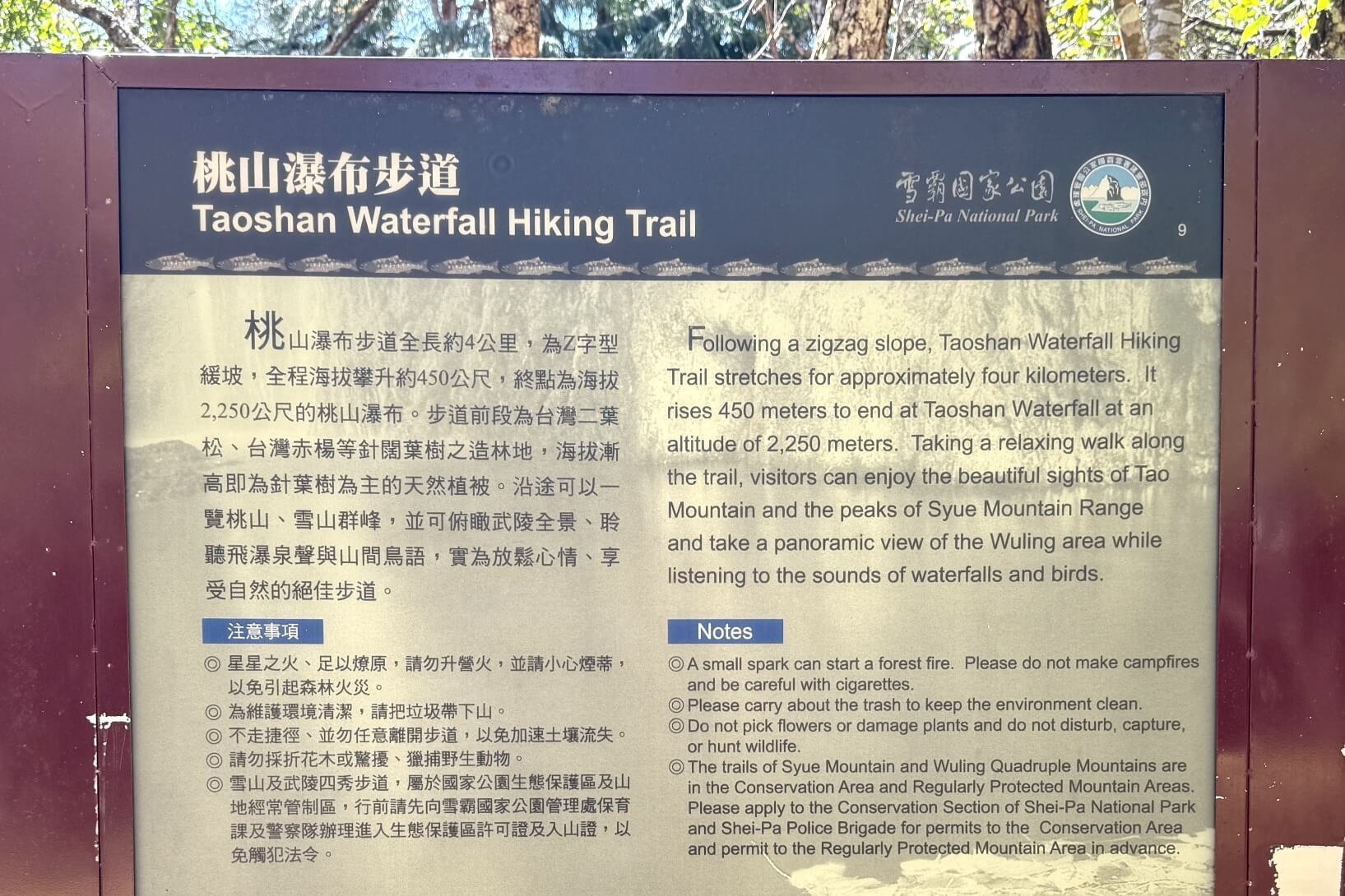 ↓我們早上的目的地是「桃山瀑布」,不過要先爬單程4.3公里的「桃山瀑布步道」,單趟路程約2小時。
