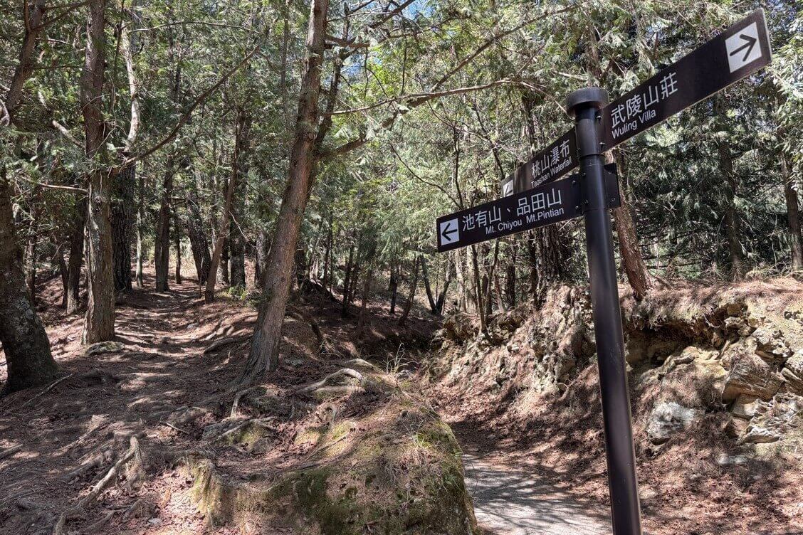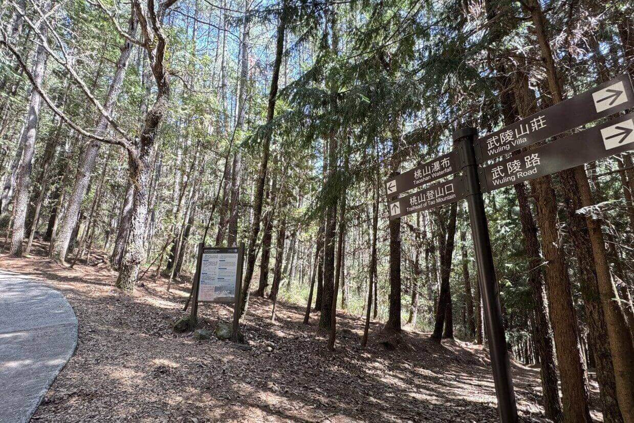 ↓右前方小徑,是武陵四秀中的「桃山登山口」。攀登武陵四秀,需事先申請入園許可證。
