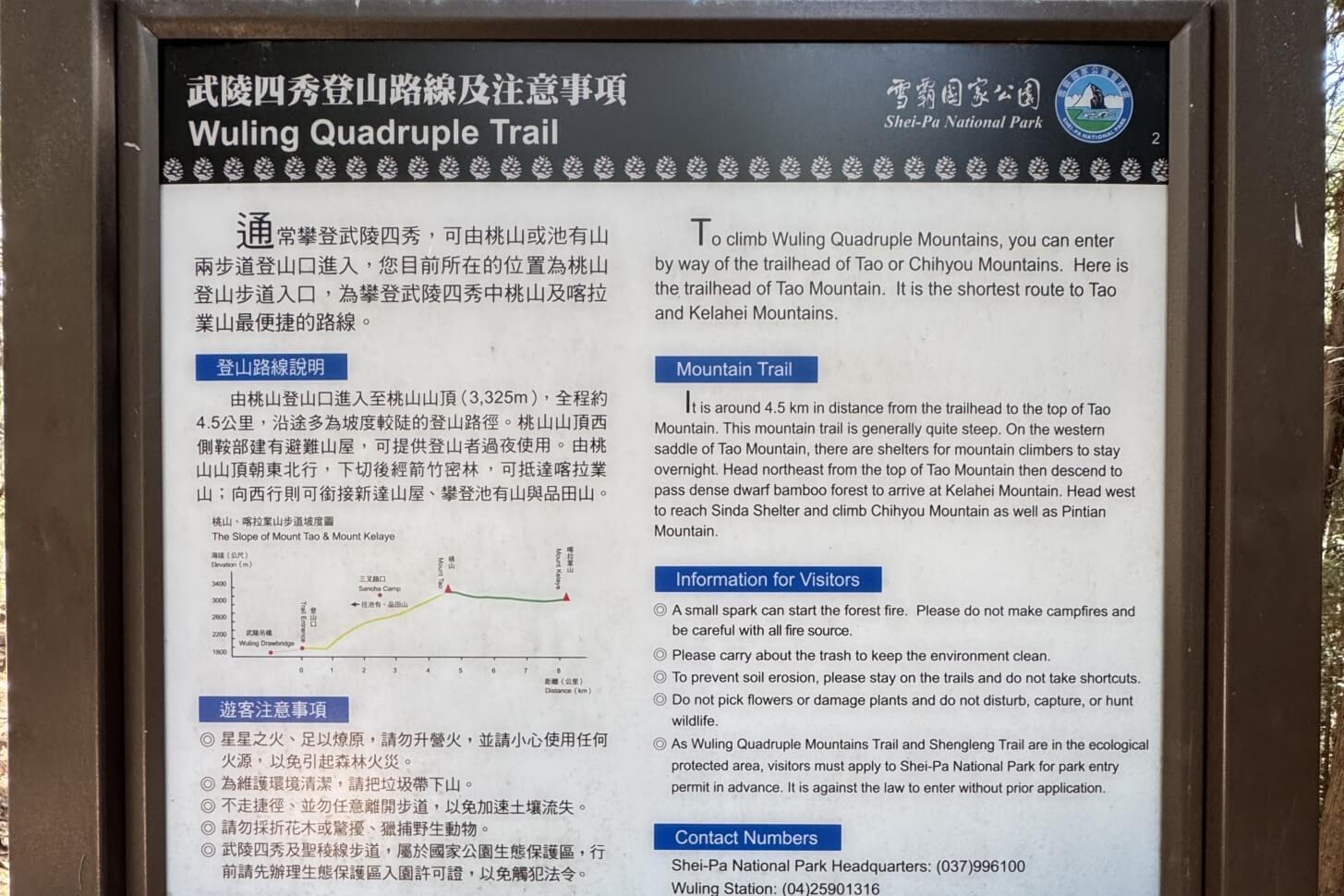 ↓攀登武陵四秀,通常是由這裡的「桃山登山口」或者另一處的「池有山登山口」起登。從這裡起登到桃山山頂(3,325公尺),全程約4.5公里,有相當的挑戰性。