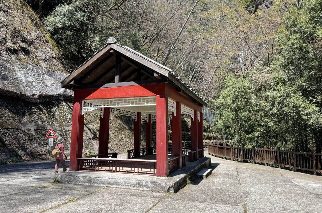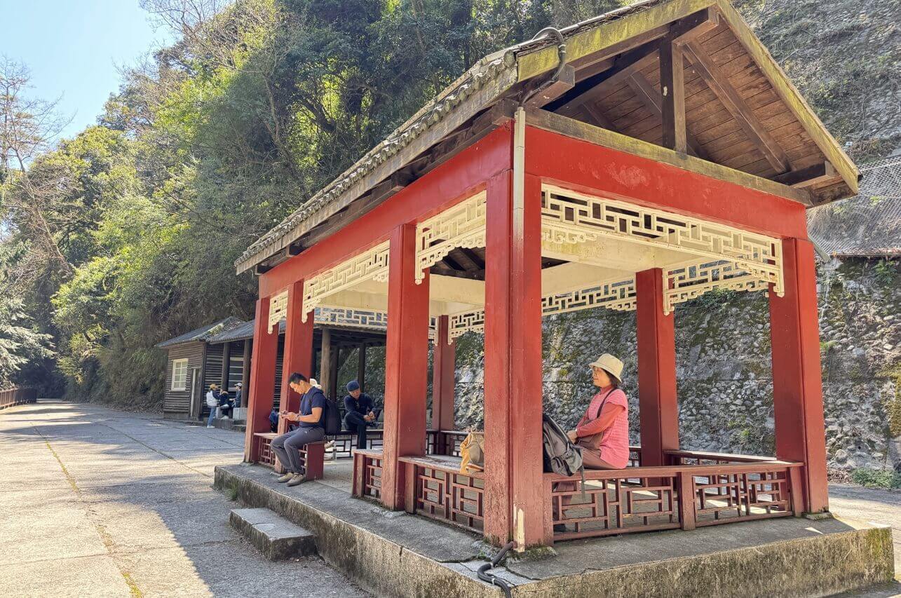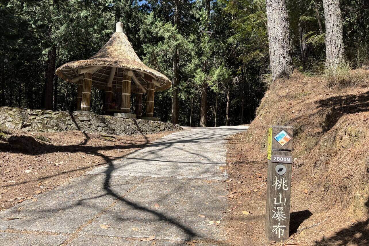 ↓這座很有造型之美的涼亭,名為「松濤亭」,是爬桃山瀑布步道很好的中繼休息站。