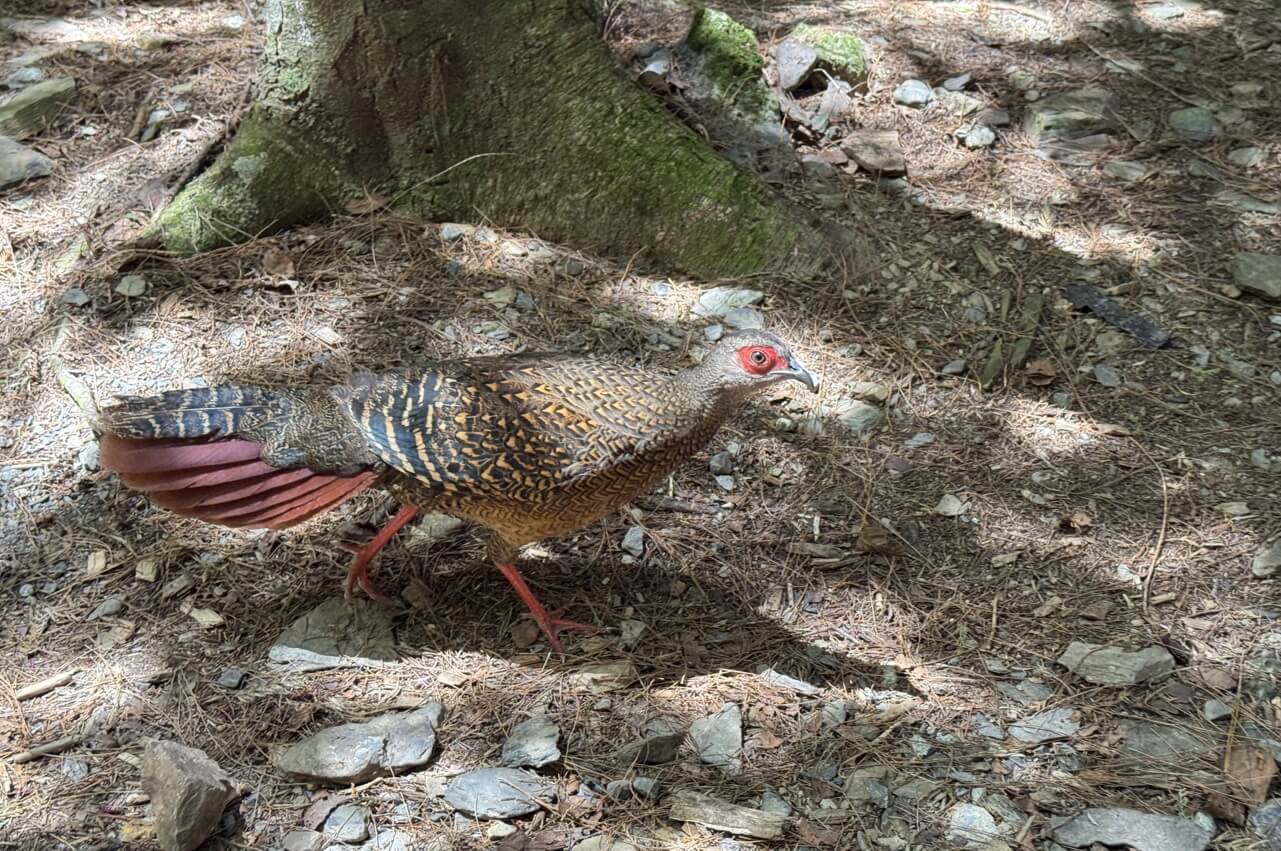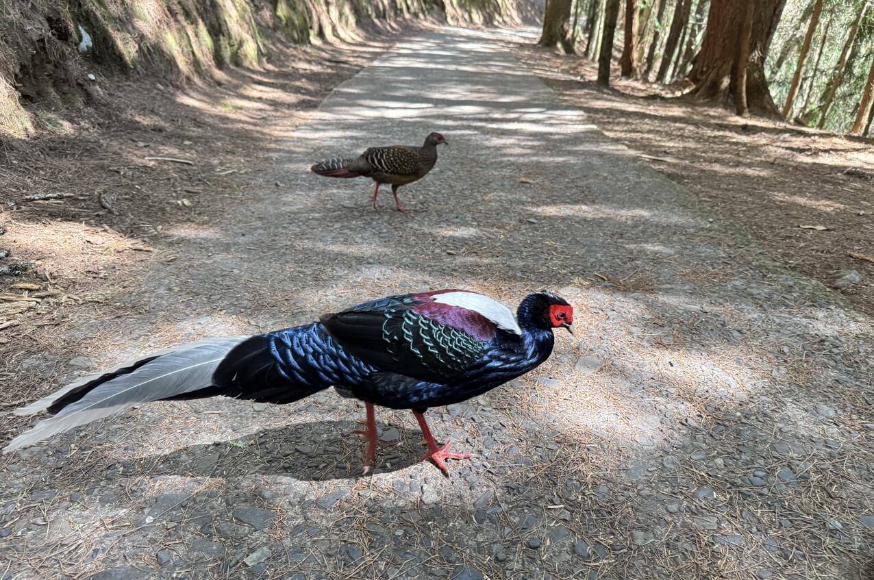 ↓藍腹鷴天性不怕人,或許是有遊客曾餵食過他們,讓他們更無戒心,但是在自然界的生存法則中,這實非幸事。