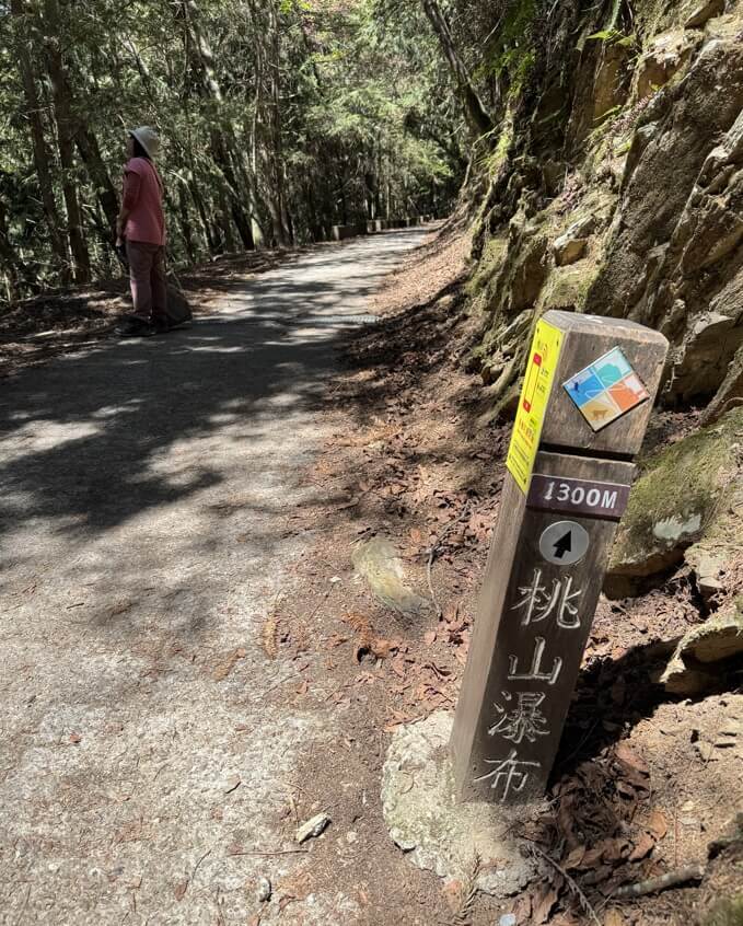 ↓1,300公尺,剩最後一公里了。我們最近一次來爬桃山瀑布步道,已經超過七、八年前了,記得第一次來爬的時候,覺得滿累的;後來再來,就覺得比較輕鬆一些了;今天爬起來,覺得也還好。