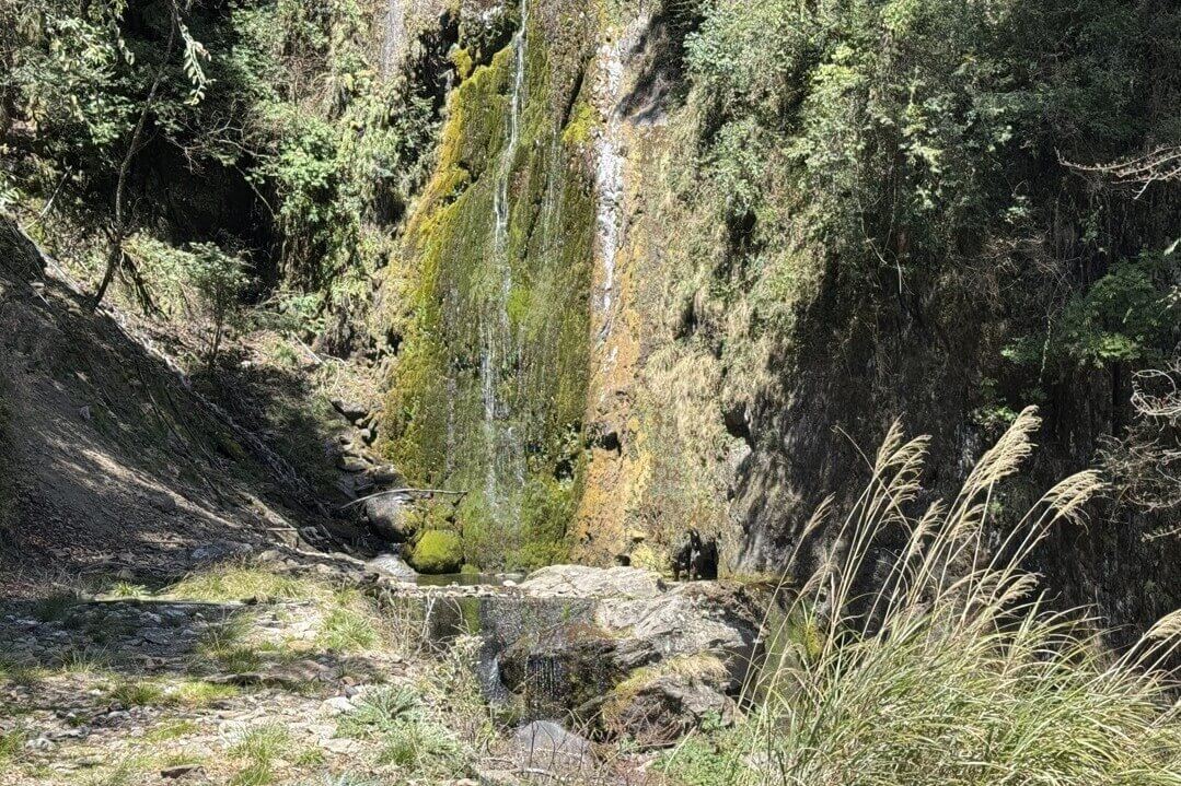 ↓只是,今年雨水不豐,桃山瀑布水量如涓涓滴流,少得可憐。桃山瀑布曾名列【全台六大瀑布】之一,這樣的水量,真令人驚訝,恐怕也名不符實。