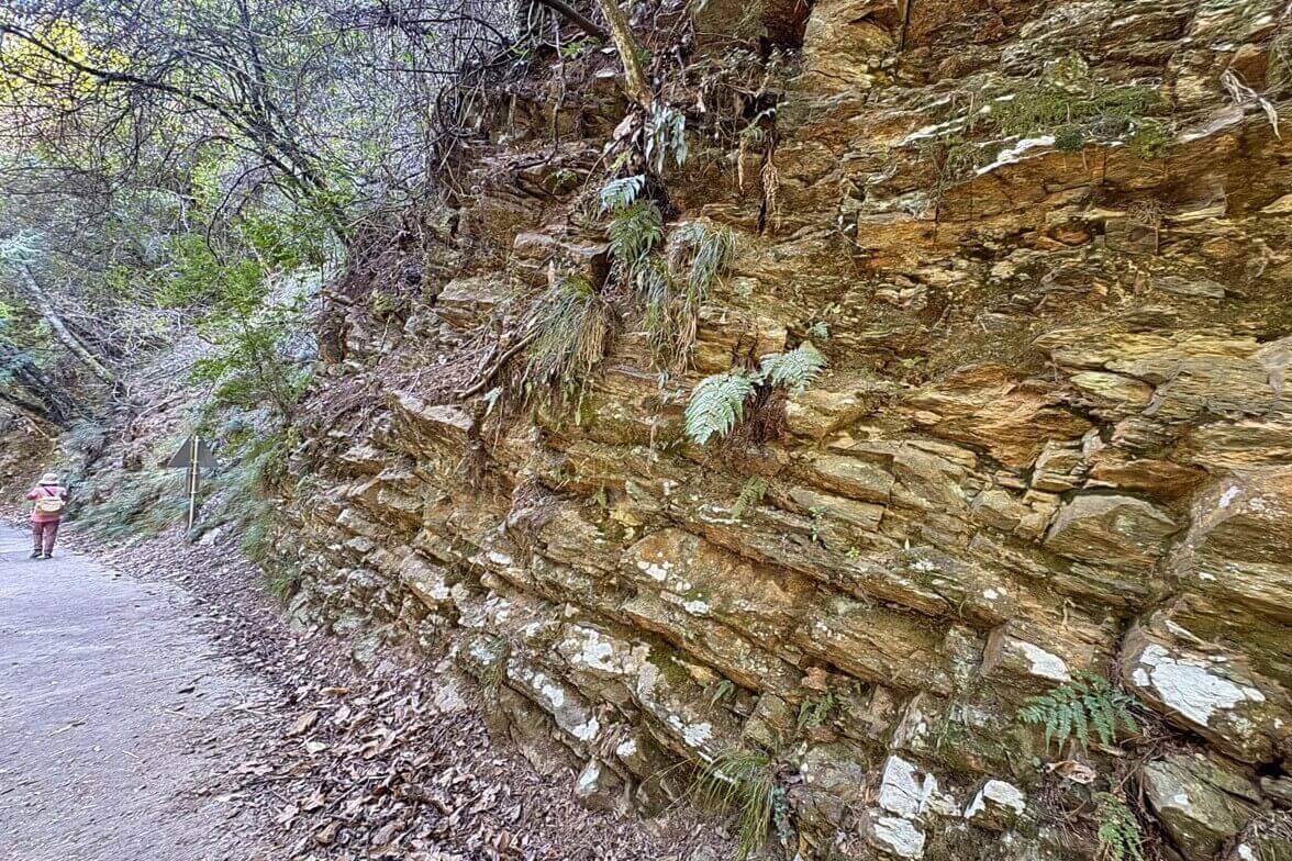 ↓經過一段「頁岩壁」,呈現明顯的層次感、易剝落的特性。